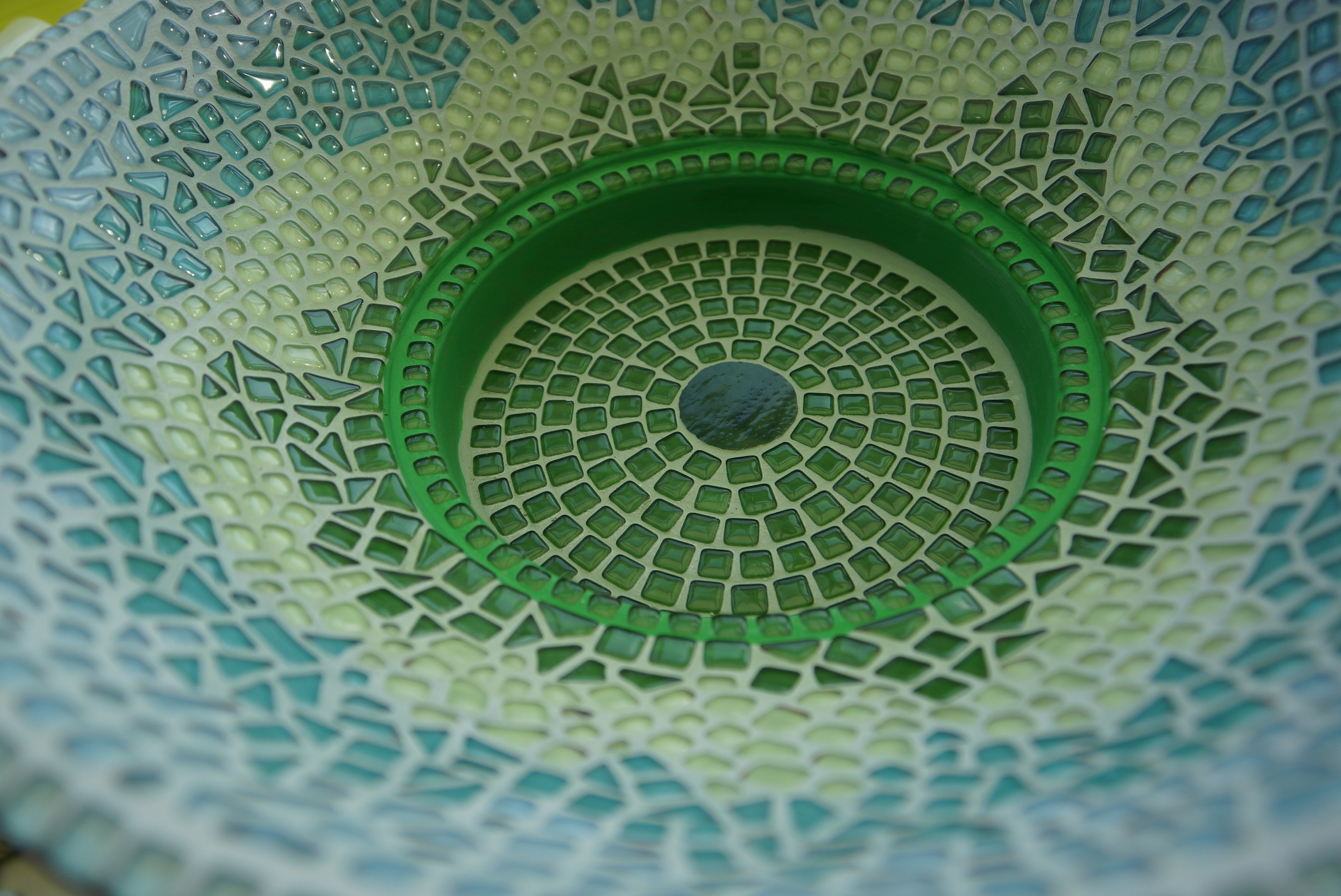 Nach sehr vielen Stunden des Glasknipsens, Klebens und Verfugens wurde der Brunnen gerade noch rechtzeitig fertig. Hier die verfugte Auffangschale: