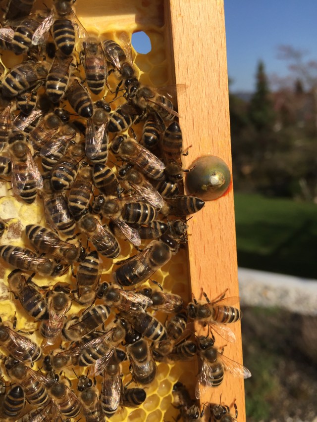 Es war unglaublich, wie schnell das Bäumchen angenommen wurde! Zuerst waren einige Hummeln, Wildbienen und Schmetterlinge da, aber schon am nächsten Tag hatten ihn wohl auch unsere Bienen entdeckt und für sehr gut befunden. Ab diesem Zeitpunkt war der Andrang dann echt enorm.
