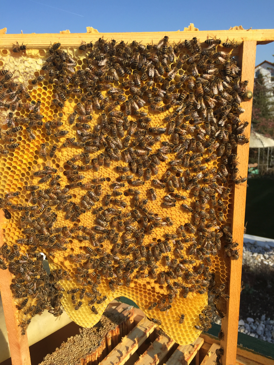 Es war unglaublich, wie schnell das Bäumchen angenommen wurde! Zuerst waren einige Hummeln, Wildbienen und Schmetterlinge da, aber schon am nächsten Tag hatten ihn wohl auch unsere Bienen entdeckt und für sehr gut befunden. Ab diesem Zeitpunkt war der Andrang dann echt enorm.