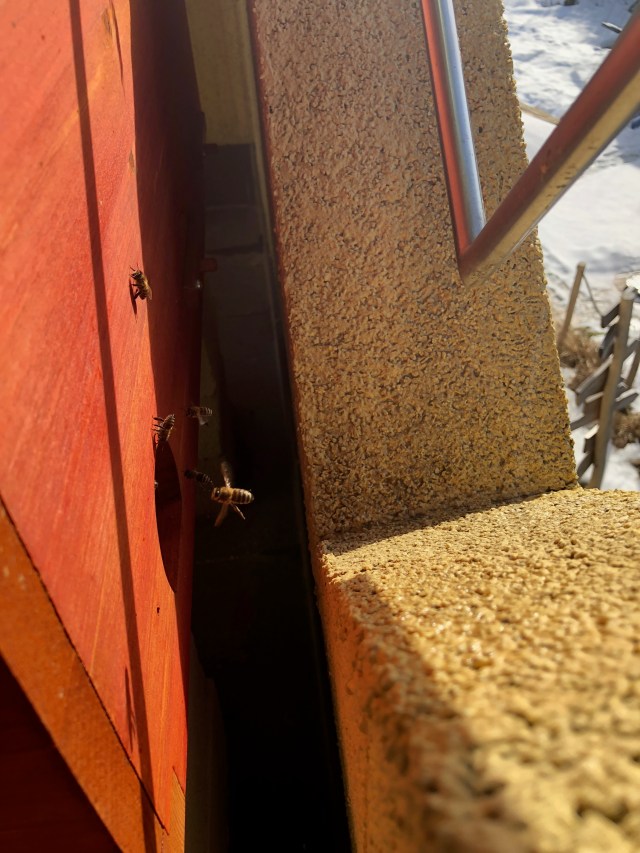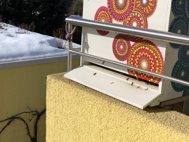 Letzten Dienstag bekam ich eine Anfrage vom Starnberger Merkur, ob wir für ein Interview zu einer aktuellen Serie über Bienen zur Verfügung stehen würden. Gesagt getan, zwei Tage später bekamen wir Besuch von einem Fotografen und einer Journalistin. Zuerst wurden ein paar Fotos auf der Garage gemacht. Leonie durfte mit posieren und war sichtlich angetan – vor allem weil der große Bruder noch in der Schule „feststeckte“. Fürs Foto öffneten wir den Deckel der gelben Beute kurz, was aber bei etwa 14° Grad und Sonnenschein kein Problem sein sollte.