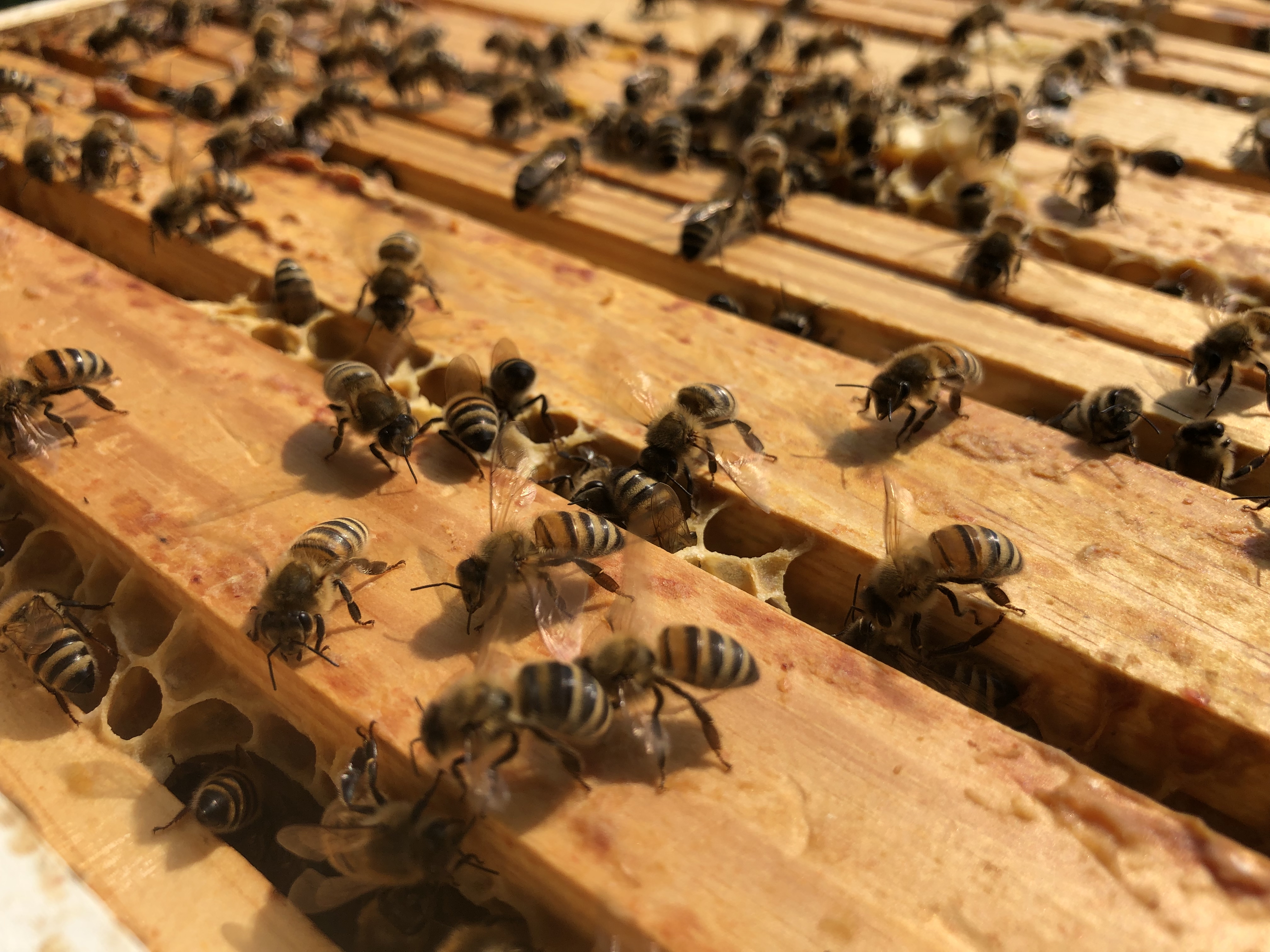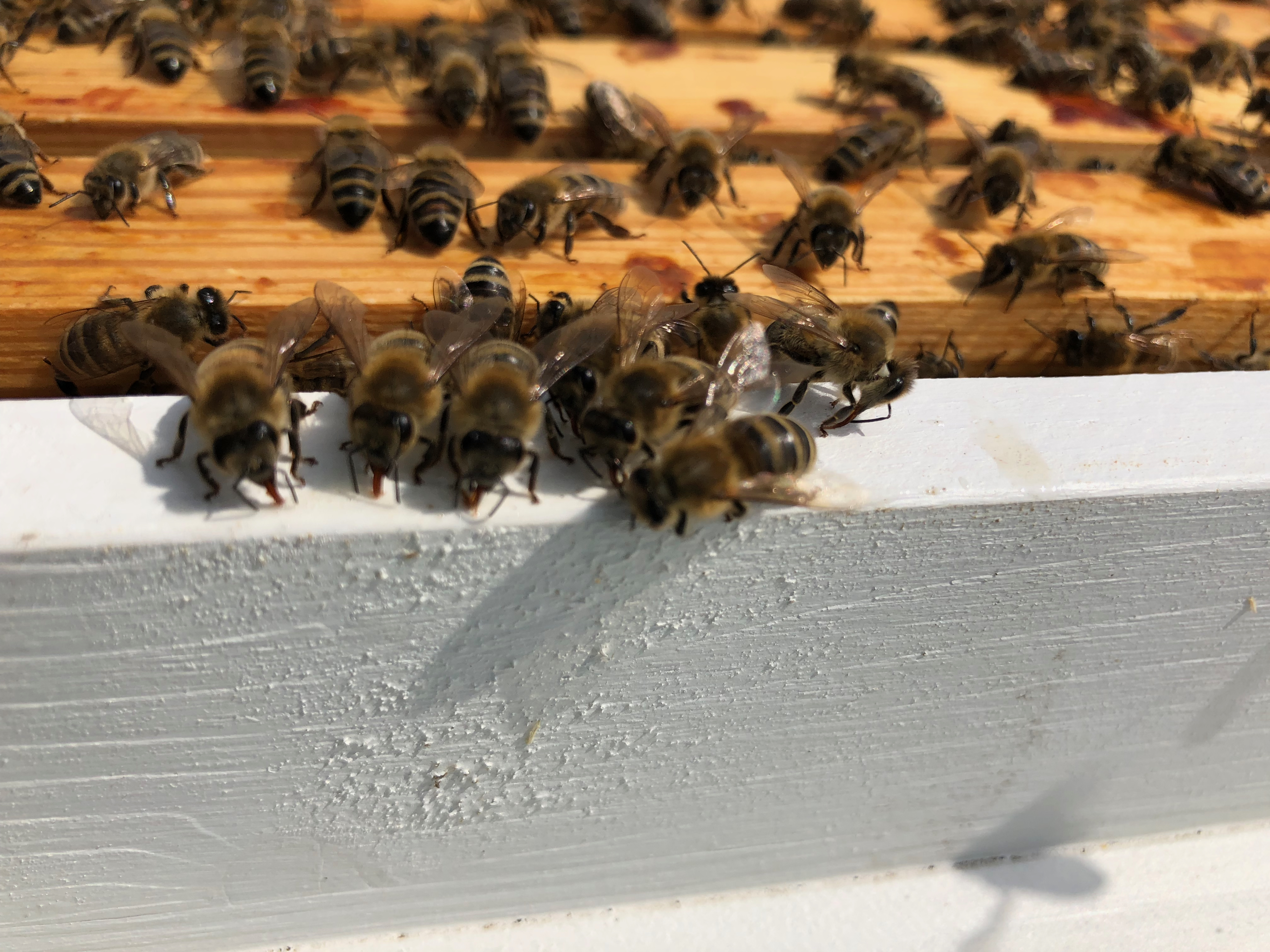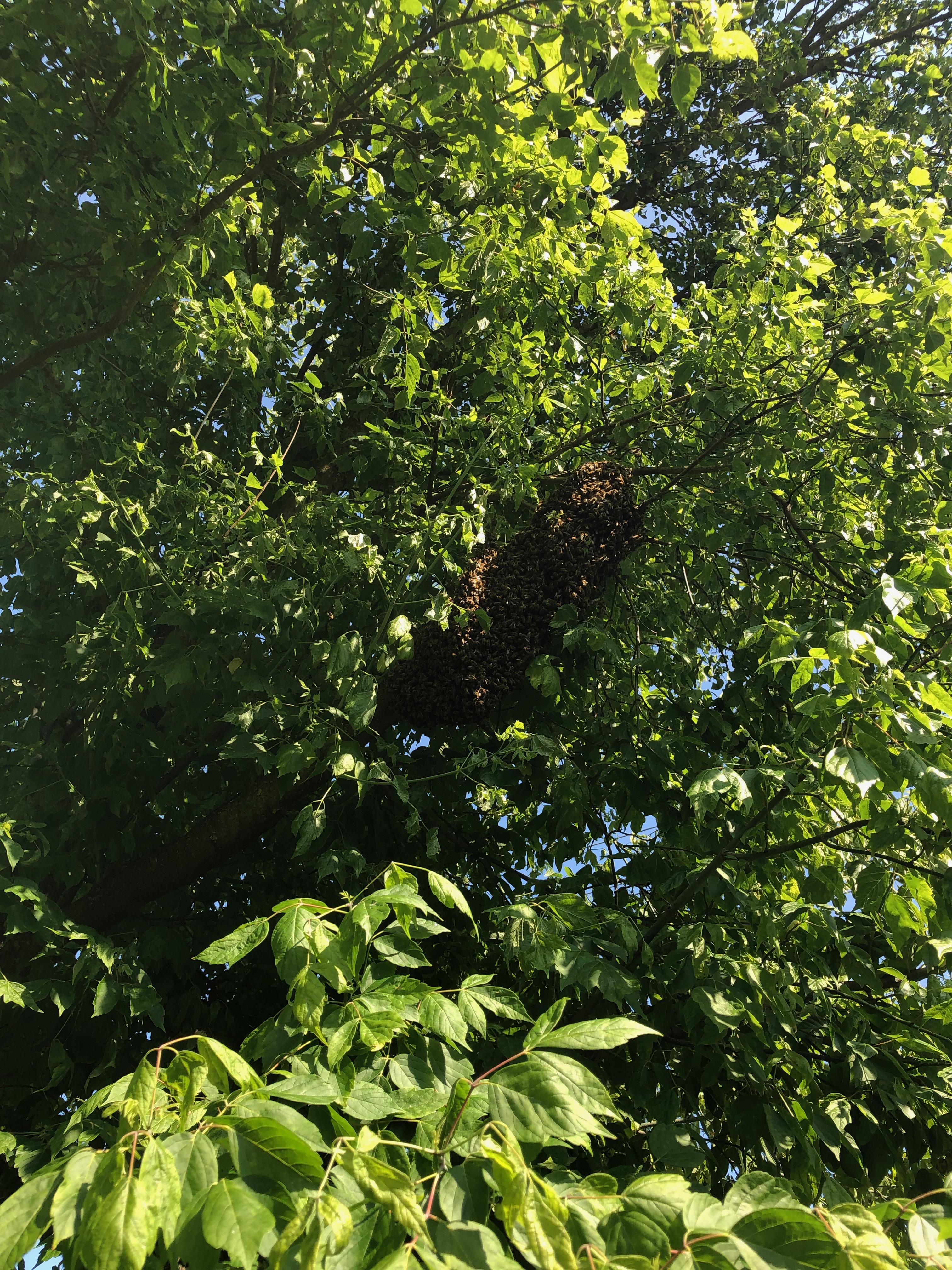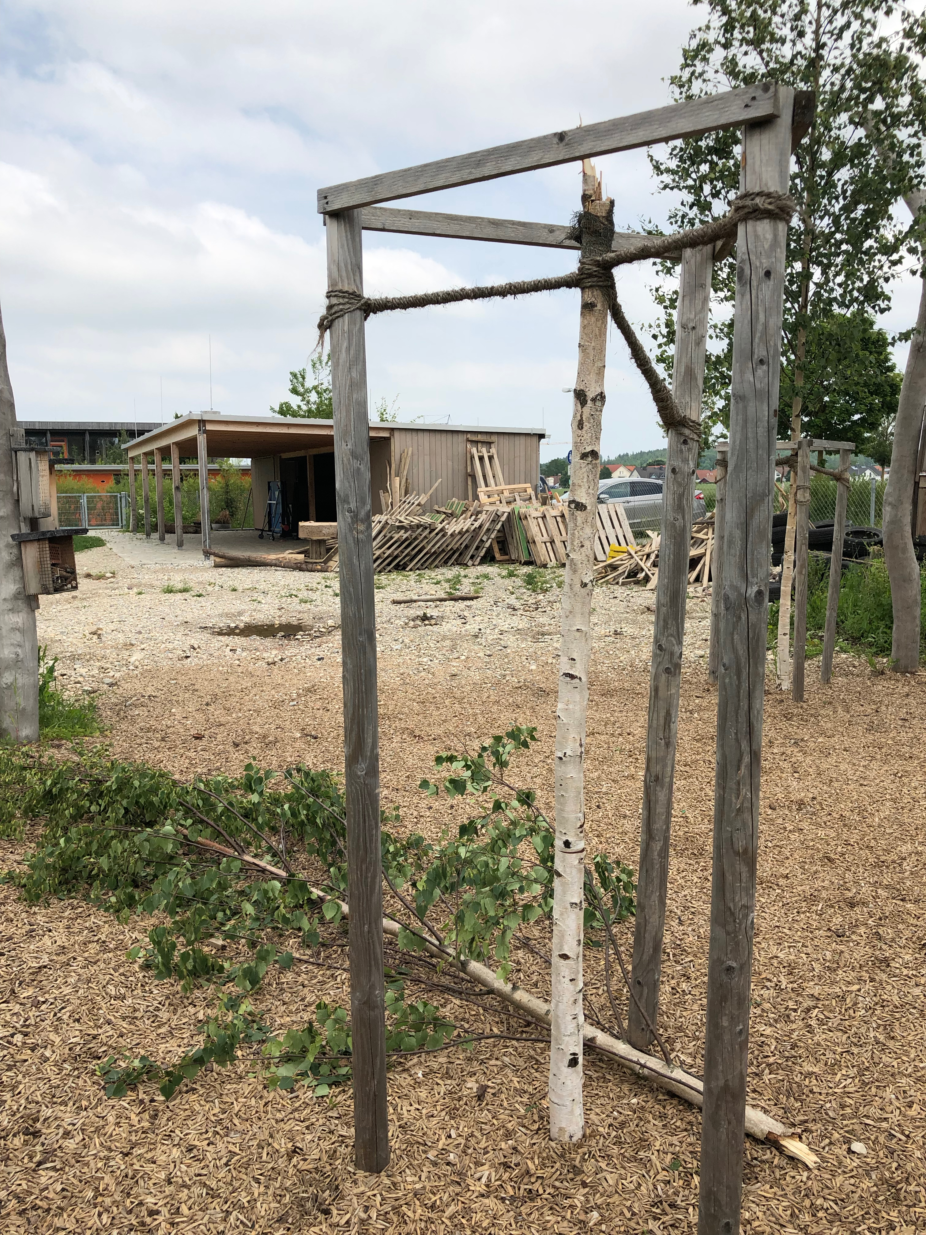 Zuerst einmal die erfreulichsten Nachricht – unsere Bienenvölker samt Behausungen haben das große Hagelunwetter Anfang Juni alle gut überstanden. Hier im Ort kamen wohl auch nur vereinzelt sehr große Hagelkörner unten an (drei davon haben leider die Röhren unserer Solarthermie zu Hause zerschossen), so dass auch der ganze Garten das Unwetter fast unbeschadet überstanden hat. An der Schule ist jedoch direkt neben der Beute ein junger Baum den heftigen Windböen zum Opfer gefallen: