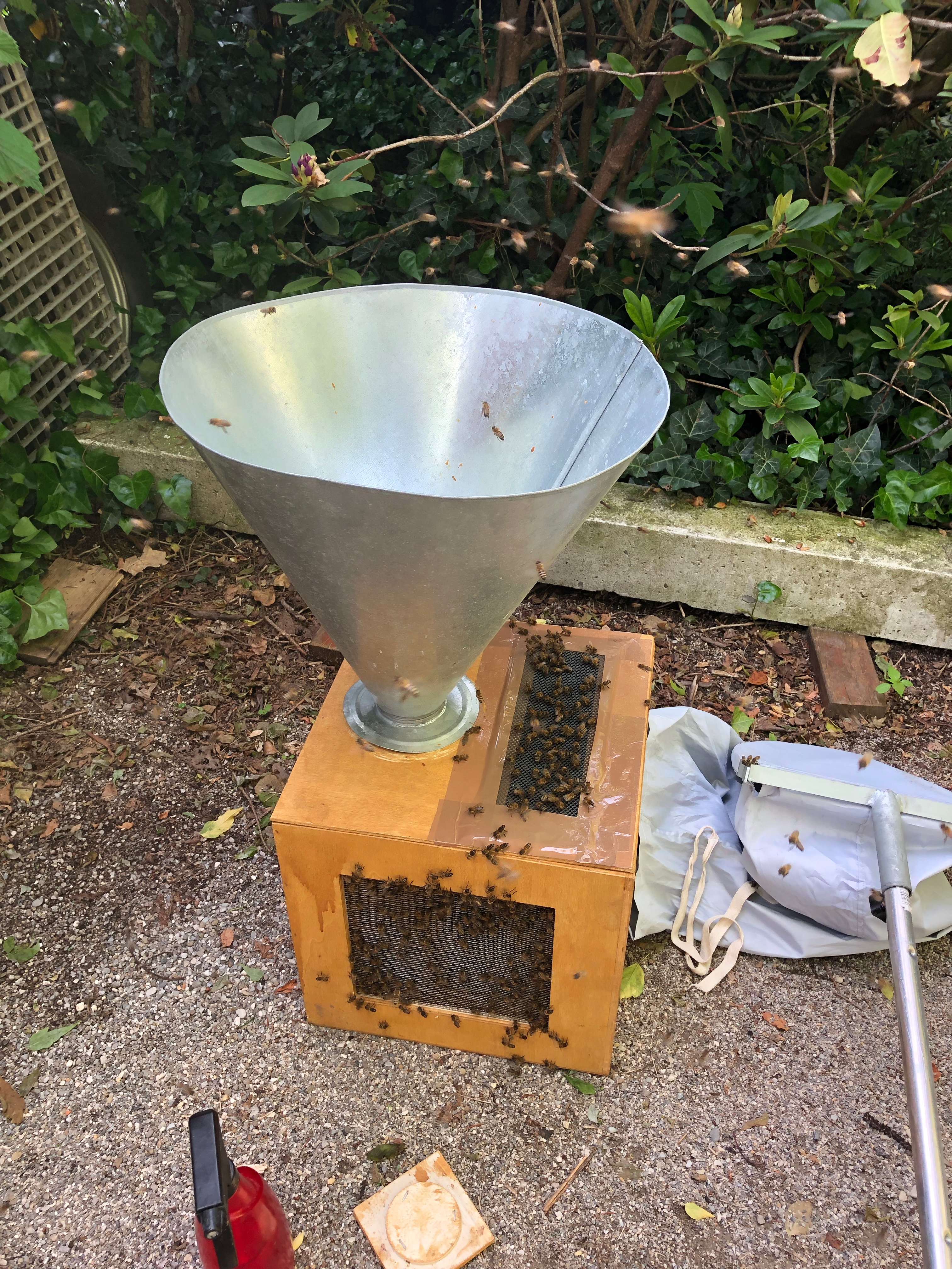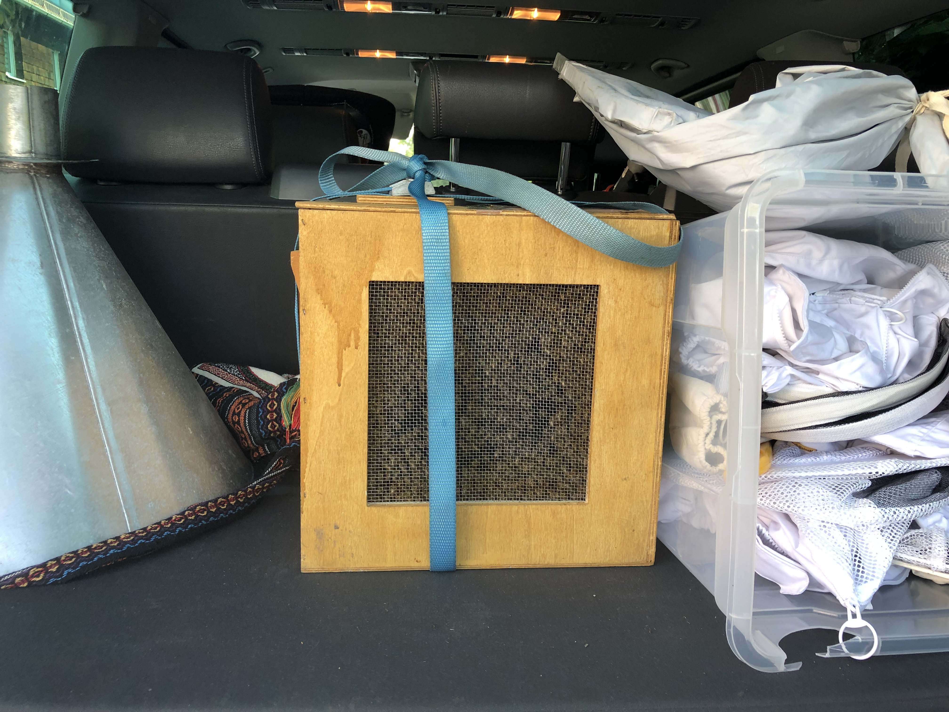 Da für den folgenden Abend wieder schwere Unwetter vorausgesagt wurden, habe ich die Schulbeute sicherheitshalber noch mit einem Gurt versehen – sicher ist sicher!