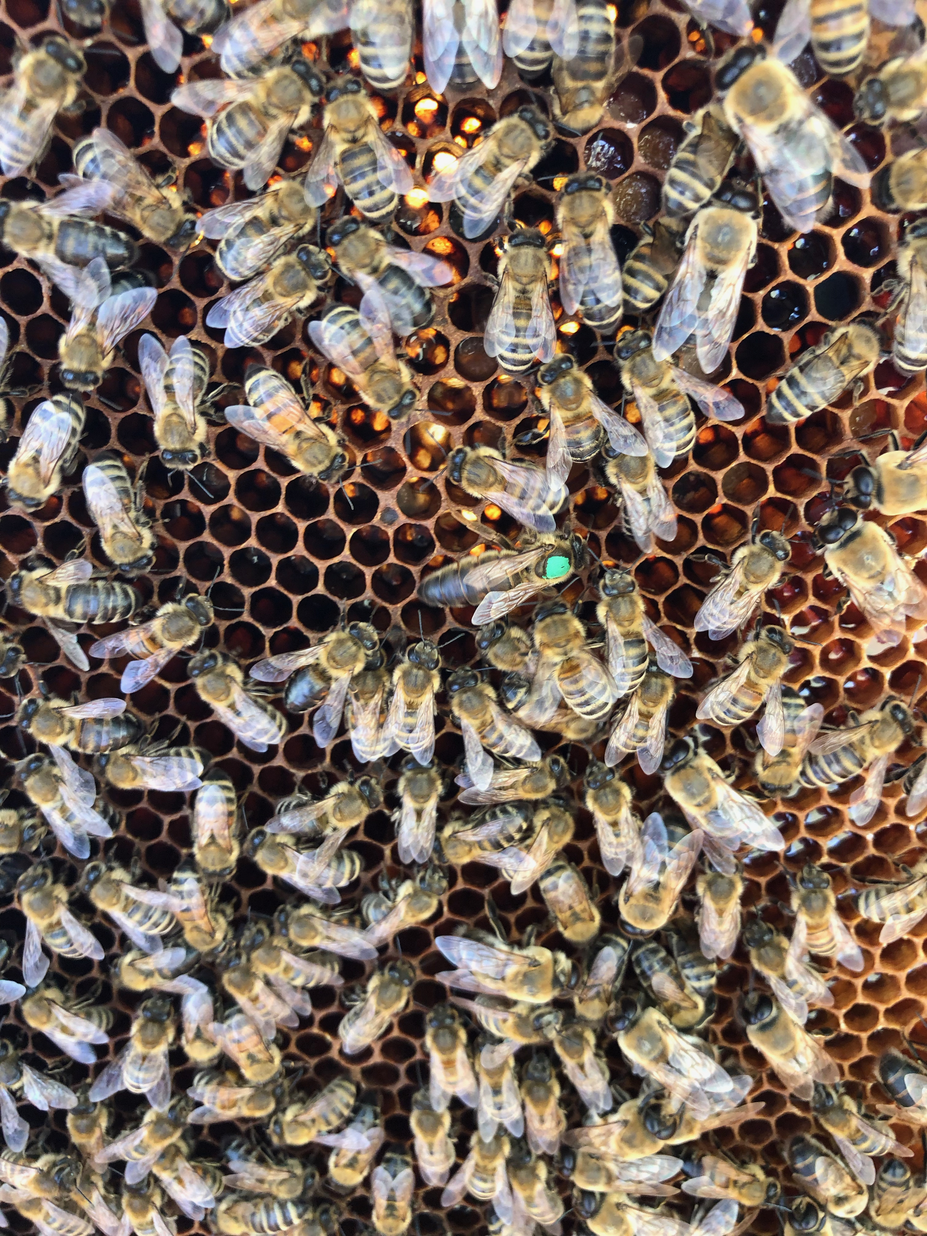 Und noch eine gute Nachricht: Die Sommerernte fiel insgesamt sehr gut aus, wir konnten noch einmal 26 Kilogramm ernten! Der Großteil stammt vom gelben Volk (14,5 Kilo), gefolgt von den bunten Balkoniern (6,5 Kilo), und jeweils noch ein wenig von Grün und Blau (gemeinsam 5,5 Kilo). Lediglich das rote Volk hatte dank der Scherereien nach dem Schwärmen zu wenig Reserven zum Ernten. Ein wenig enttäuscht war ich auch vom grünen Volk mit der zugekauften Königin. Mal sehen, ob es nächstes Jahr besser wird… Der Wassergehalt ist schön niedrig, so wie er sein sollte!