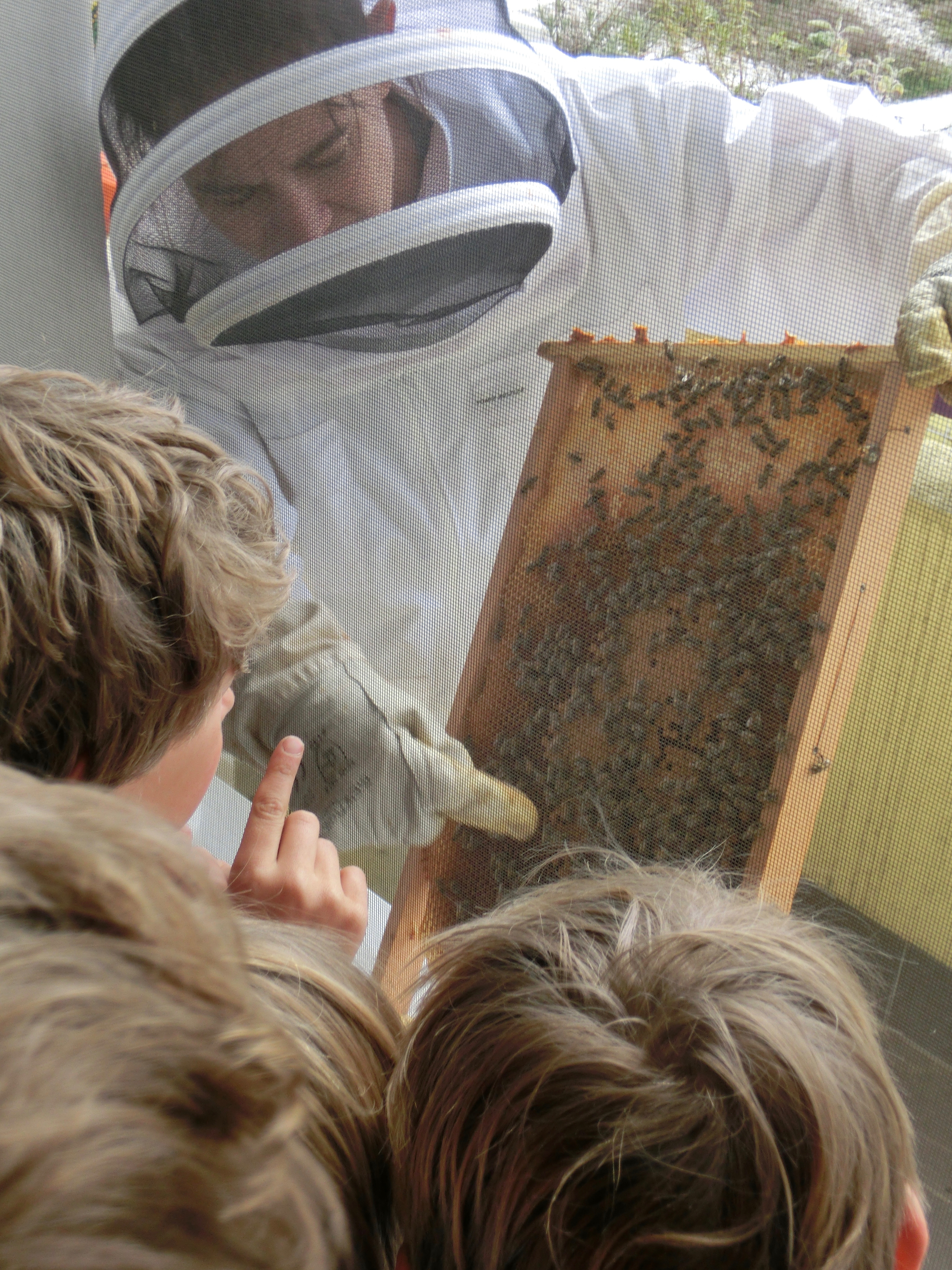 Als sich dann doch noch kurz die Sonne herauskam, konnte ich auf dem Balkon noch kurz ein Rähmchen ziehen und den Kindern zeigen – die dank Insektengitter an den Balkonfenstern recht nah dran sein konnten.