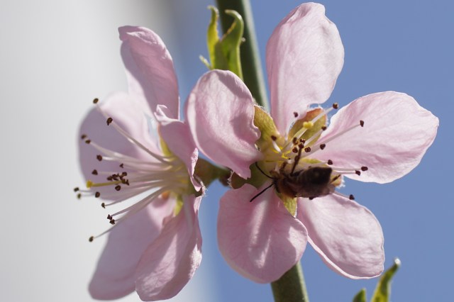 Diesem Bäumchen (Zierpfirsich Prunus persica „Taoflora Red“) konnte ich beim letzten Pflanzenkauf nicht widerstehen, weil er schon im Gartencenter voller Bienen war:
