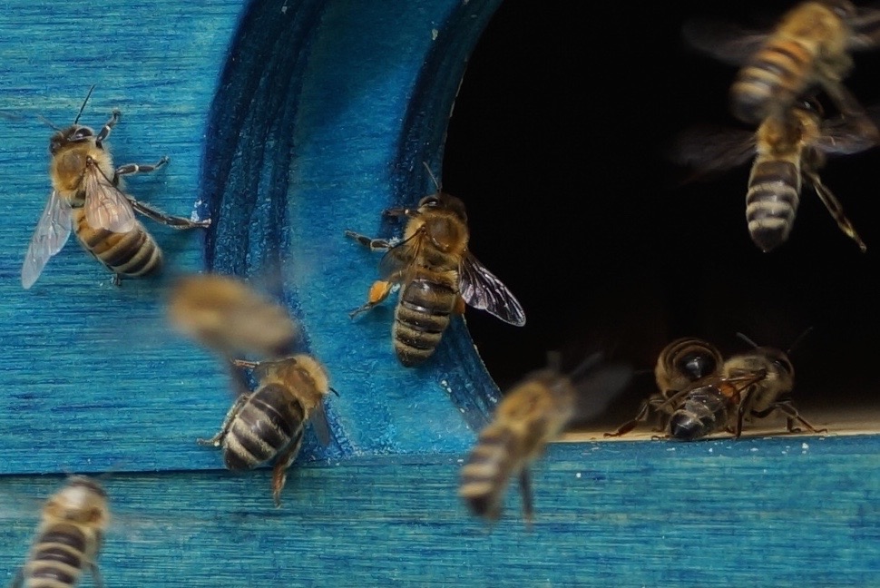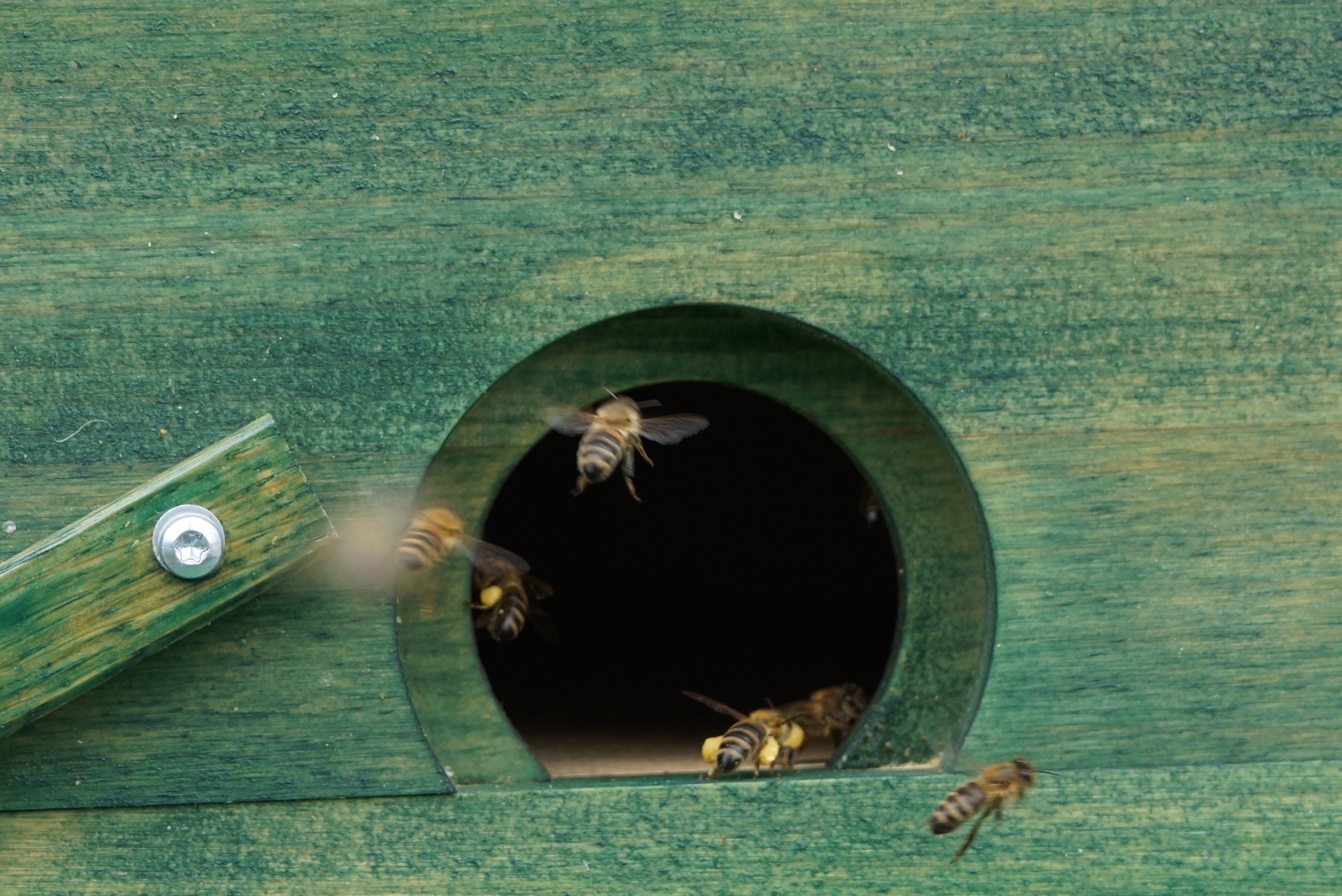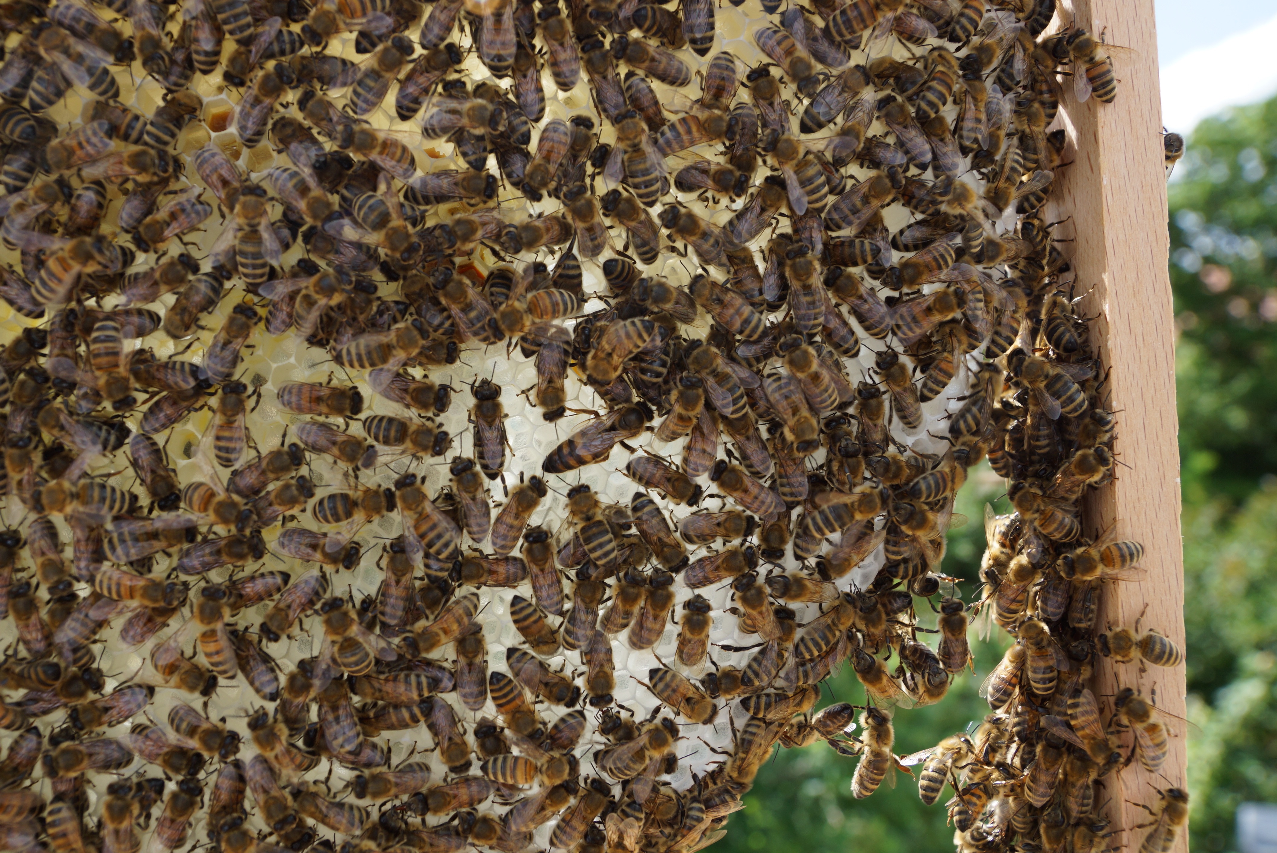 Sie sind auch dermaßen ruhig, entspannt und wabenstet, dass es echt eine Freude ist, bei ihnen durchzusehen! Ich bin ja eher der Schisser, aber an die könnte man wirklich ohne jeglichen Schutz rangehen. (Wenn man nicht am nächsten Tag wieder Tennispunktspiel hätte und einen Stich an den Pfoten so gar nicht brauchen kann…)