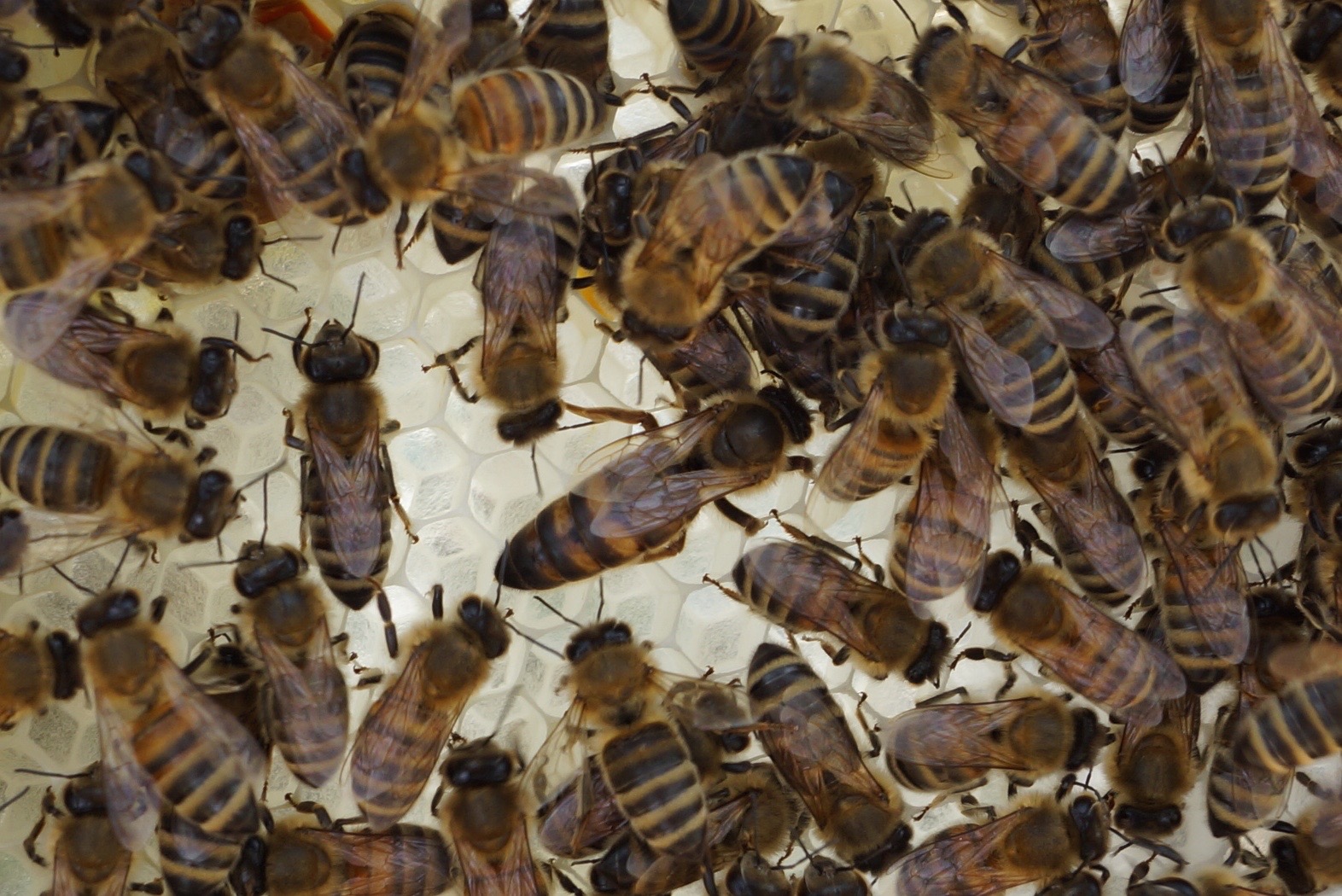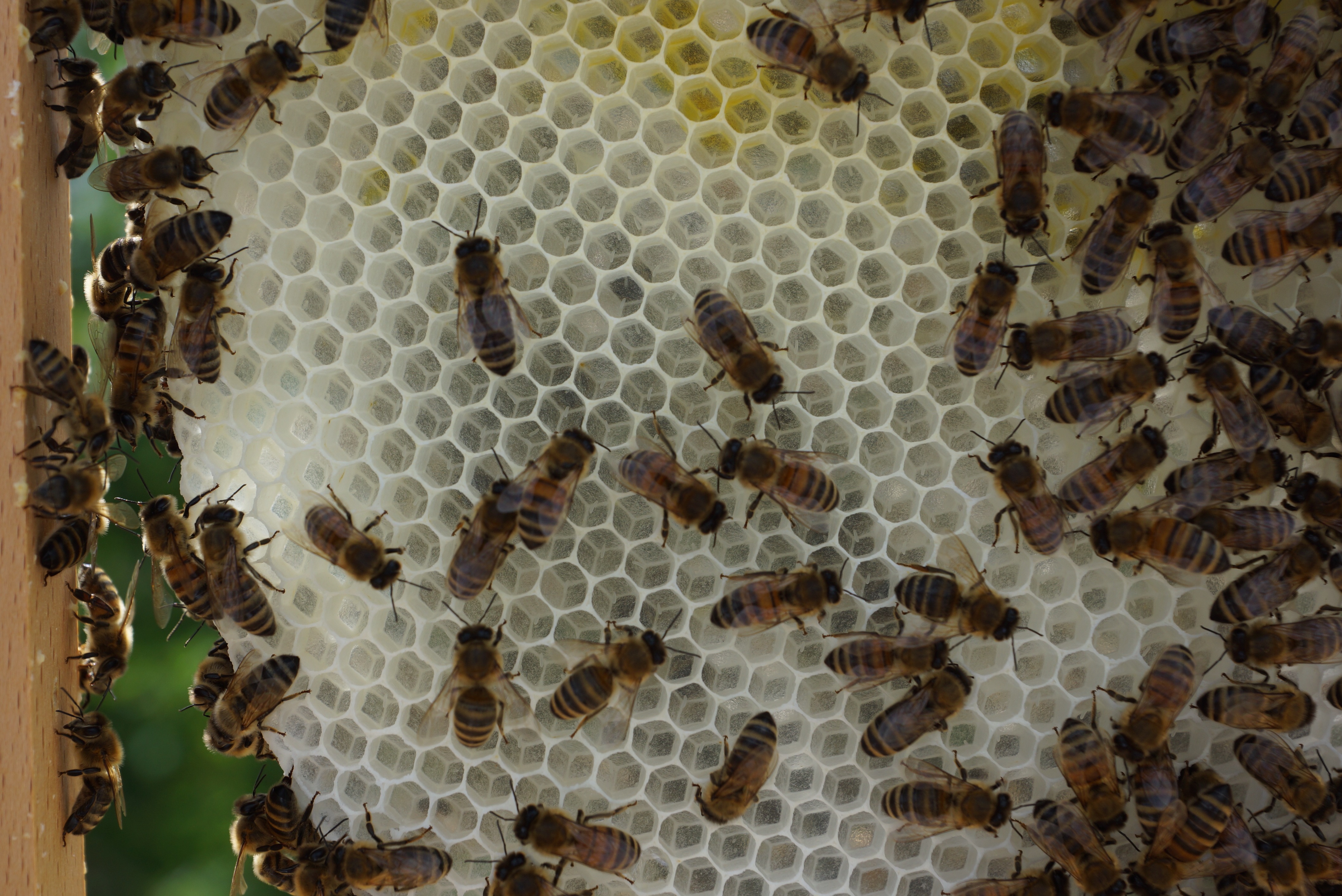 Das Foto ist leider echt schlecht, aber die Lichtbedingungen waren etwas schwierig, weswegen dieses Bild auch mit der Taschenlampe in der Goschen entstanden ist. Ohne Extralicht habe ich gar nichts erkannt… Ich glaube ich brauche langsam eine Lesebrille für die Imkerkiste…