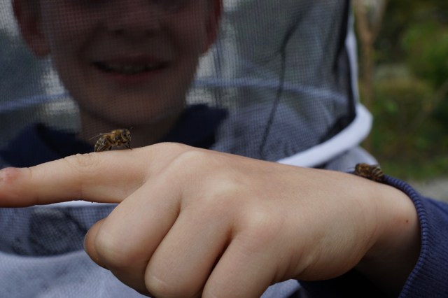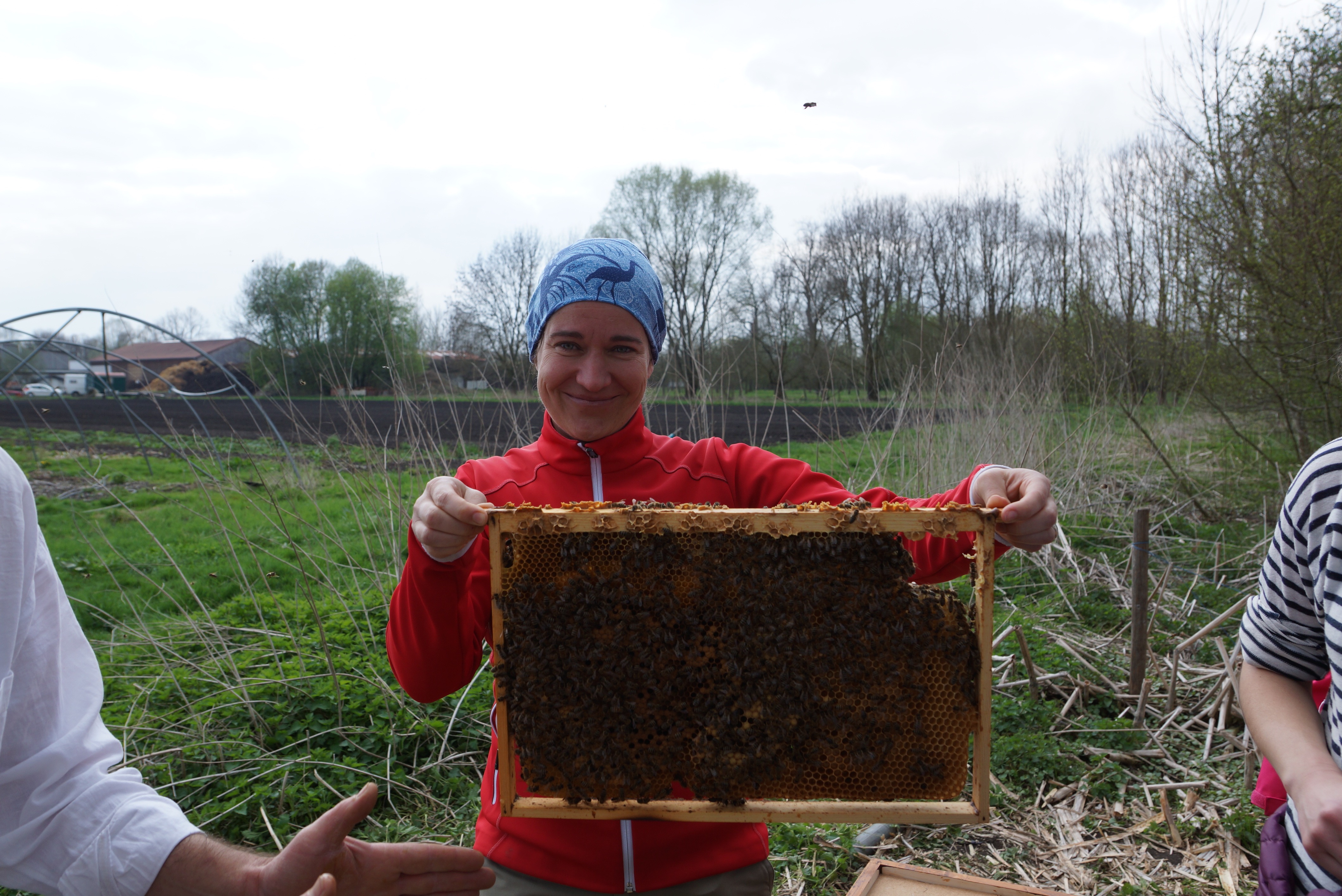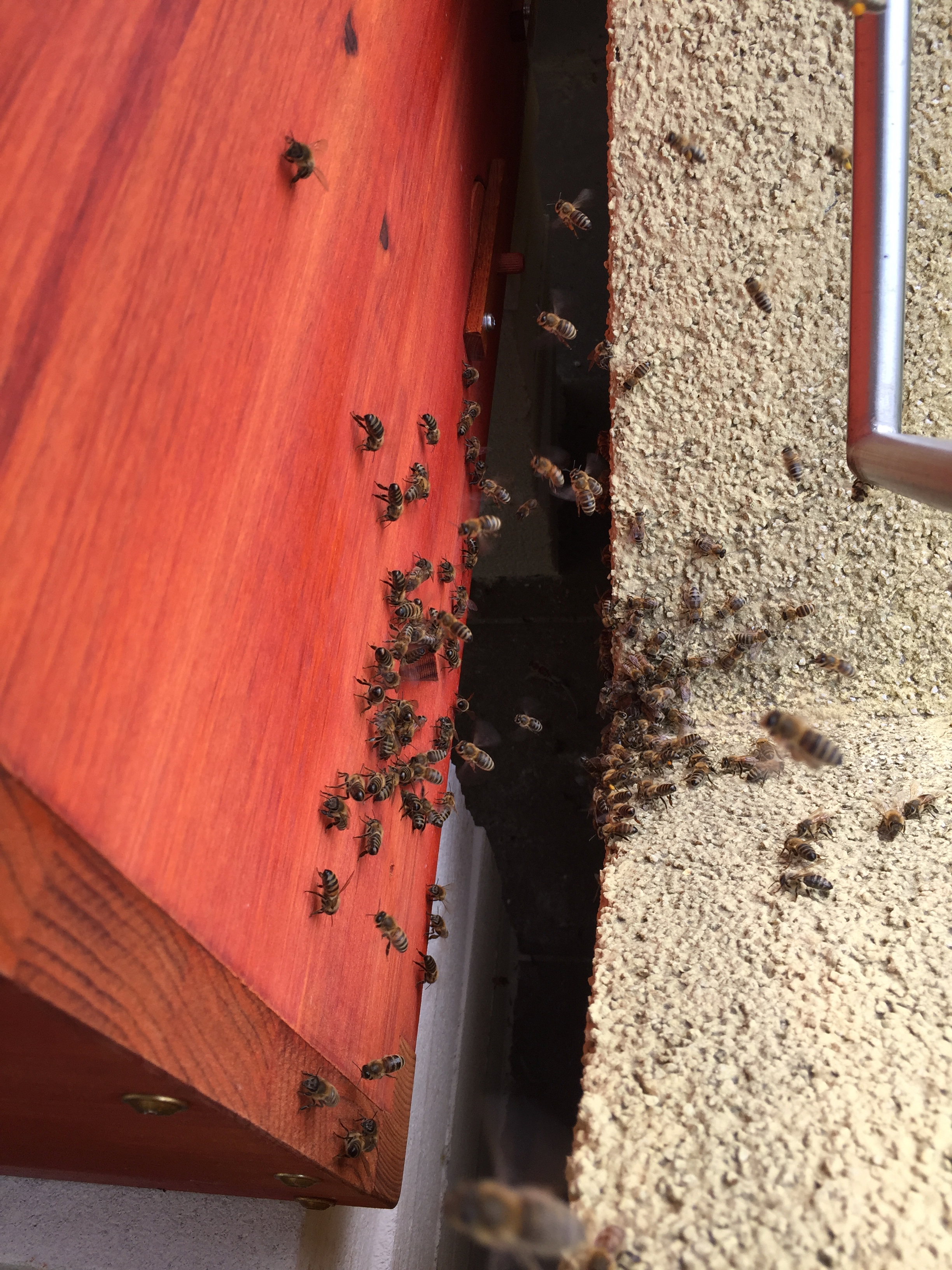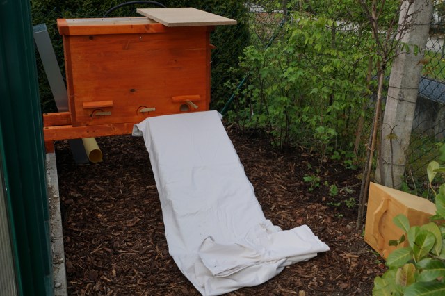Die Bienen durften auf dem schönen Hof Rosenrot bei Dachau gleichen Abend in eine schöne neue Einraumbeute einziehen – und waren zu unser aller Freude auch am nächsten Tag noch drin (es wäre auch zu gemein, wenn sie am Geburtstag ihres neuen „Frauchens“ abgehauen wären!). Es ist immer nett, wenn ich aus der Ferne noch ein klein wenig „live“ dabei bin, wenn sie in ihrem neuen Zuhause ankommen.