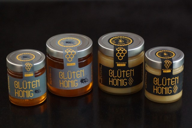 Das ist immer ein ganz besonderer Moment, wenn der erste Schwall Honig aus der Schleuder läuft! Er fließt dann durch zwei Siebe, mit deren Hilfe die kleinen Wachsteilchen, die beim Entdeckeln und Schleudern anfallen, vom Honig getrennt werden.