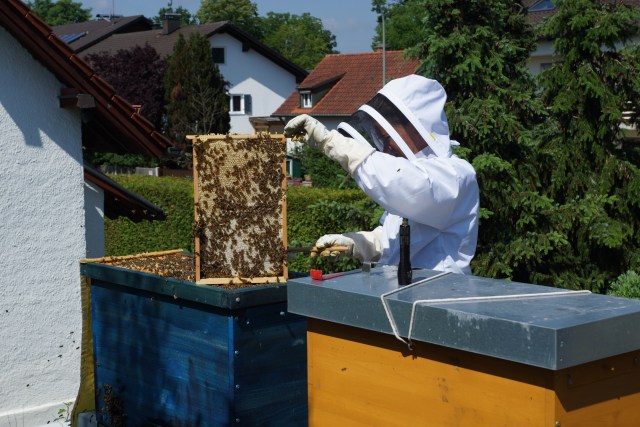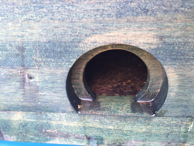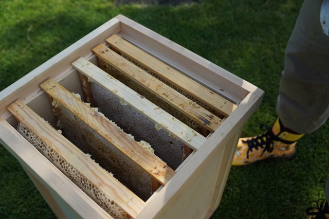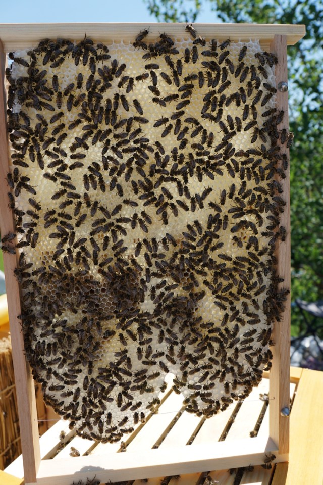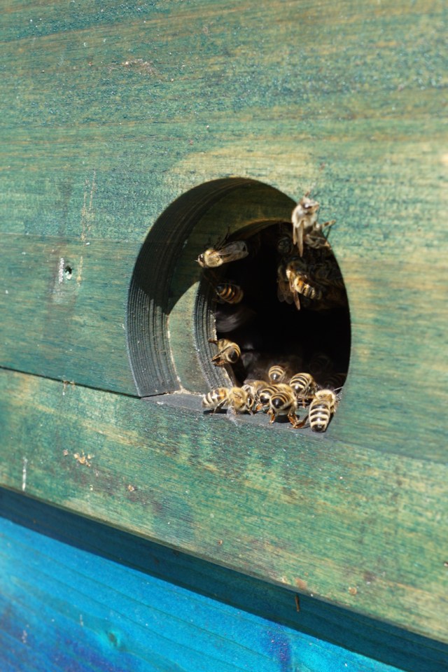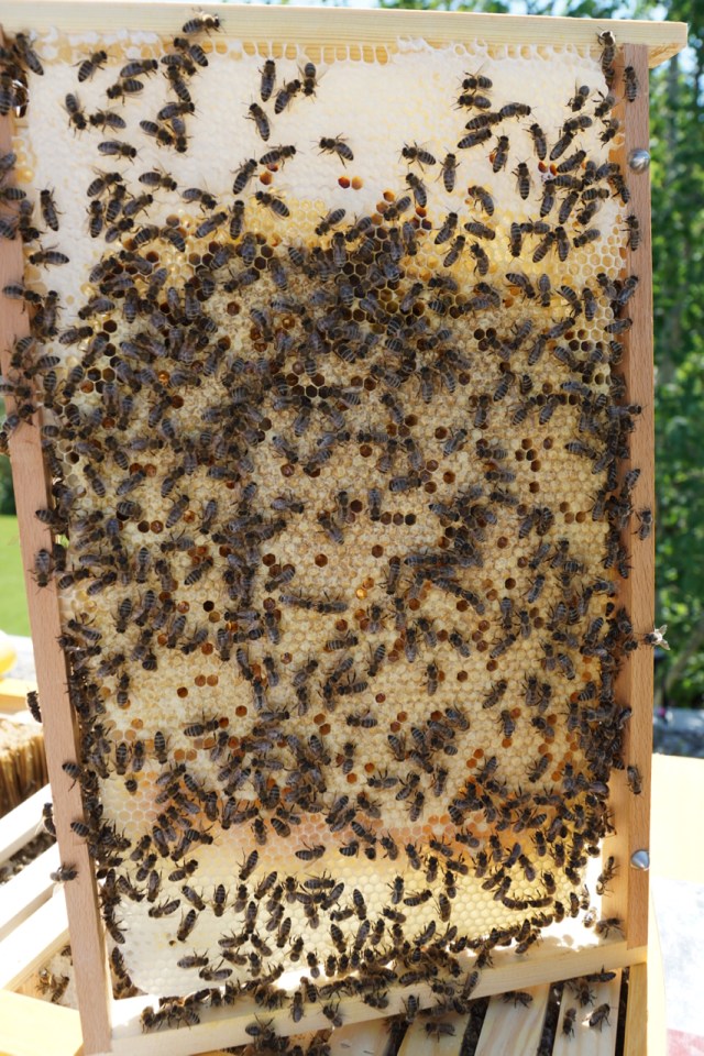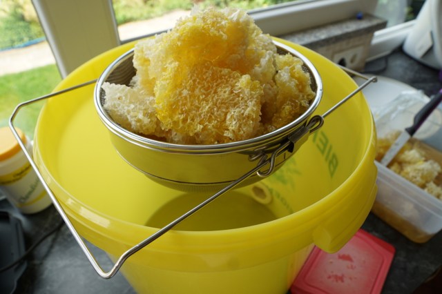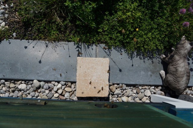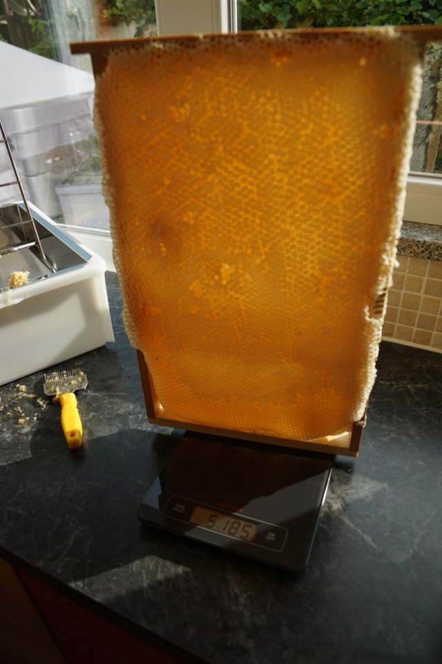 Den fand ich nämlich leider Mitte August gar nicht mehr vor, nur noch sein minimalistisches Wabenwerk, was gerade von Wachsmotten zerstört wurde. Ich gehe mal sehr stark davon aus, dass die direkten Nachbarn die Gelegenheit zum Räubern genutzt und sich an den Vorräten des sehr schwachen Ablegers bedient hatten. Es war mein erster Versuch eine Reservekönigin über den Sommer zu ziehen, und der war leider mit Pauken und Trompeten gescheitert, trotz winzig kleinen Fluglochs. Es waren auch einfach zu wenig Bienen gewesen, sie sind trotz Fütterung hinten und vorne nicht nachgekommen, entsprechend war auch der Milbendruck zu hoch im Volk gewesen. 😦 Ist mir eine traurige Lehre fürs nächste Mal.