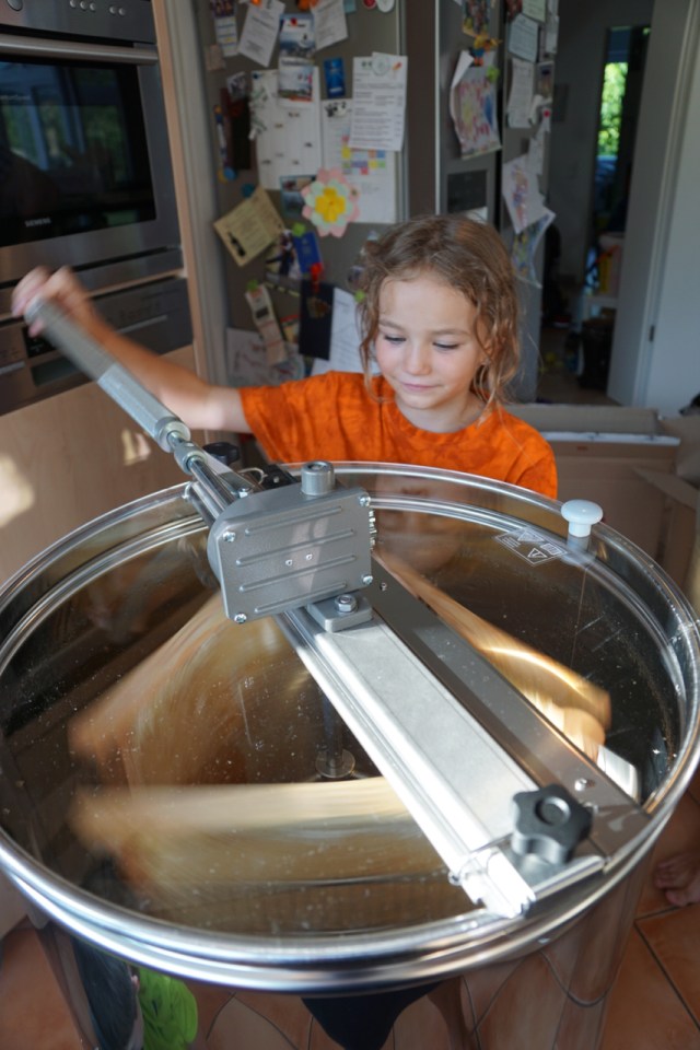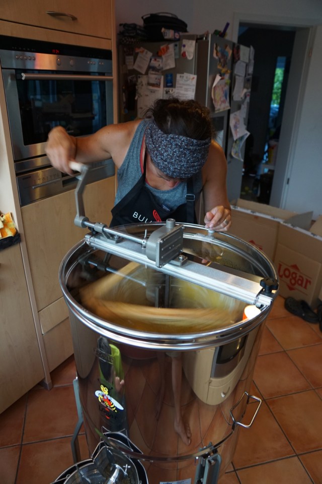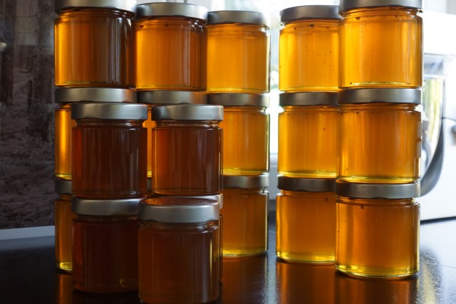 Ich versuche nun hier zusammenzufassen, was sich bei unseren Bienenvölkern so getan hat. Fangen wir mal mit den Bienen zu Hause an. Der restliche Sommer verlief daheim tatsächlich in recht ruhigen Bahnen. Wir haben wieder eine ganz nette Honigernte zusammen bekommen, und ich habe neue Etiketten entworfen.
