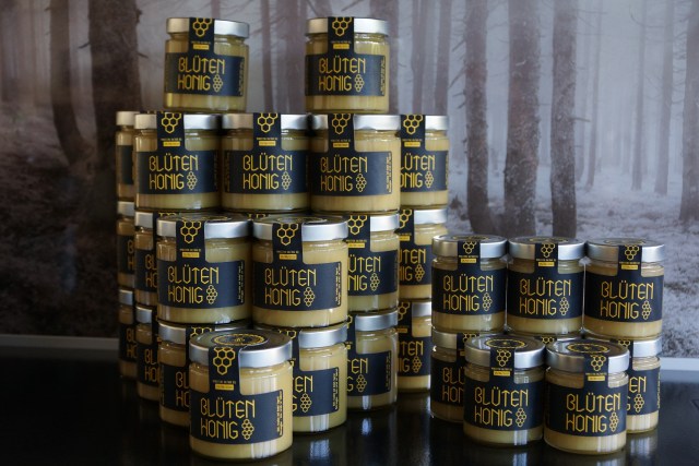 Nach einigem Hin und Her habe ich mich für ein durchsichtiges Design entschieden, weil da einfach die wunderbare Honigfarbe gut zur Geltung kommt. Sehr viele Kundinnen haben das äußerst positiv kommentiert. Den Männern scheint die Verpackung relativ egal zu sein – Hauptsache der Honig schmeckt! 😉