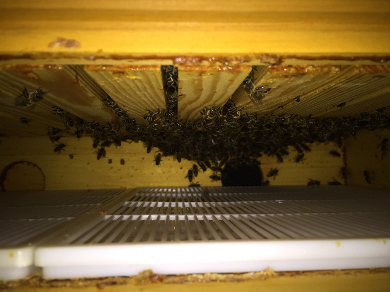 Sie haben auch schon ganz gut Nektar eingelagert und mit dem Ausbau der beim letzten Mal eingesetzten Rähmchen begonnen: