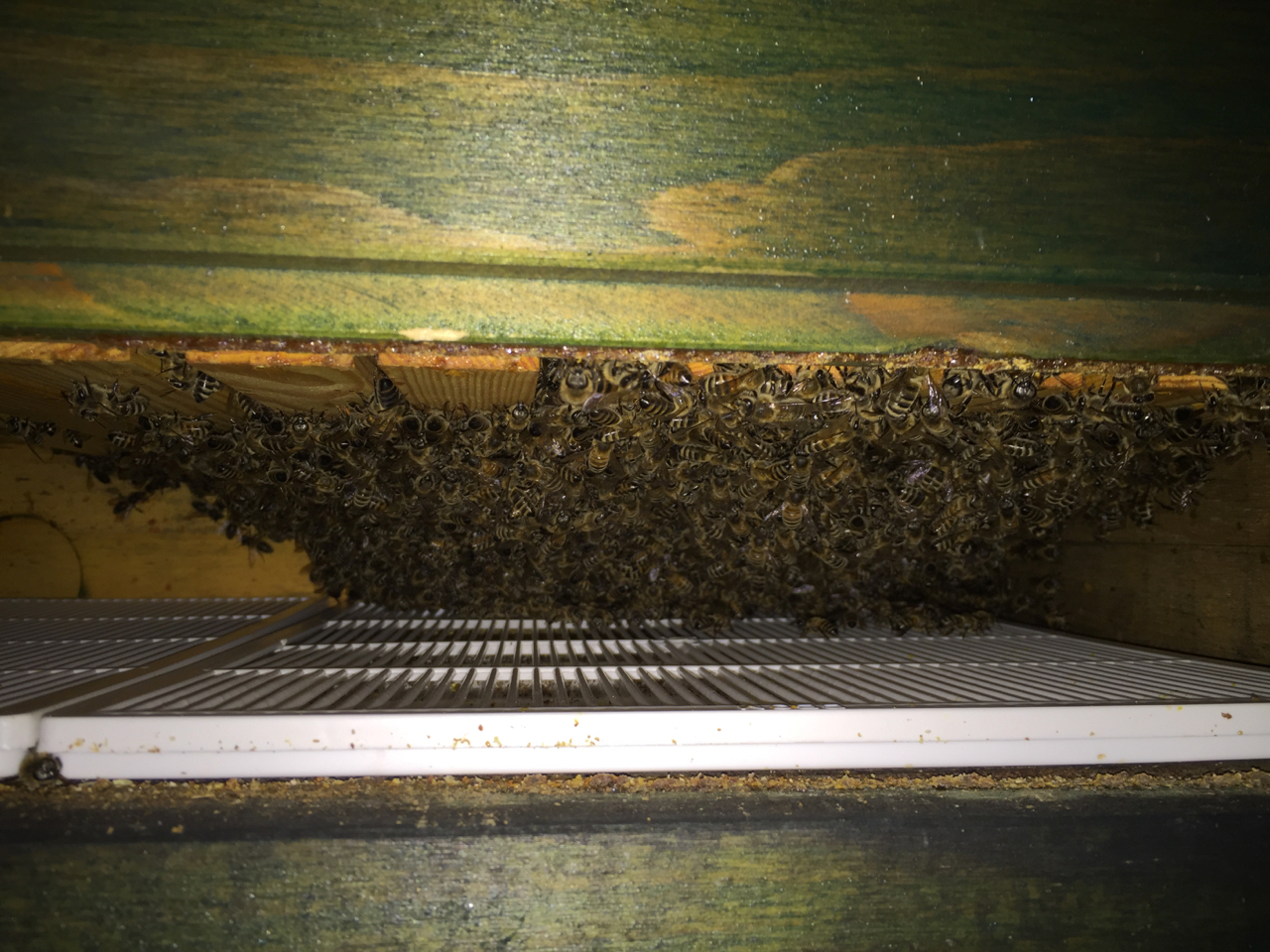 Bei beiden Völkern waren noch keine Spielnäpfchen (das sind so eine Art Vorübungen zu den Weiselzellen) oder Weiselzellen zu sehen – es sollte also die nächste Woche auf keinen Fall ein Schwarm abgehen. Allerdings ist so ein mehrzipfeliger Wabenbau wie auf dem letzten Bild ein Indikator für eine beginnende Schwarmstimmung. Ich werde also sehr regelmäßig kontrollieren fahren!