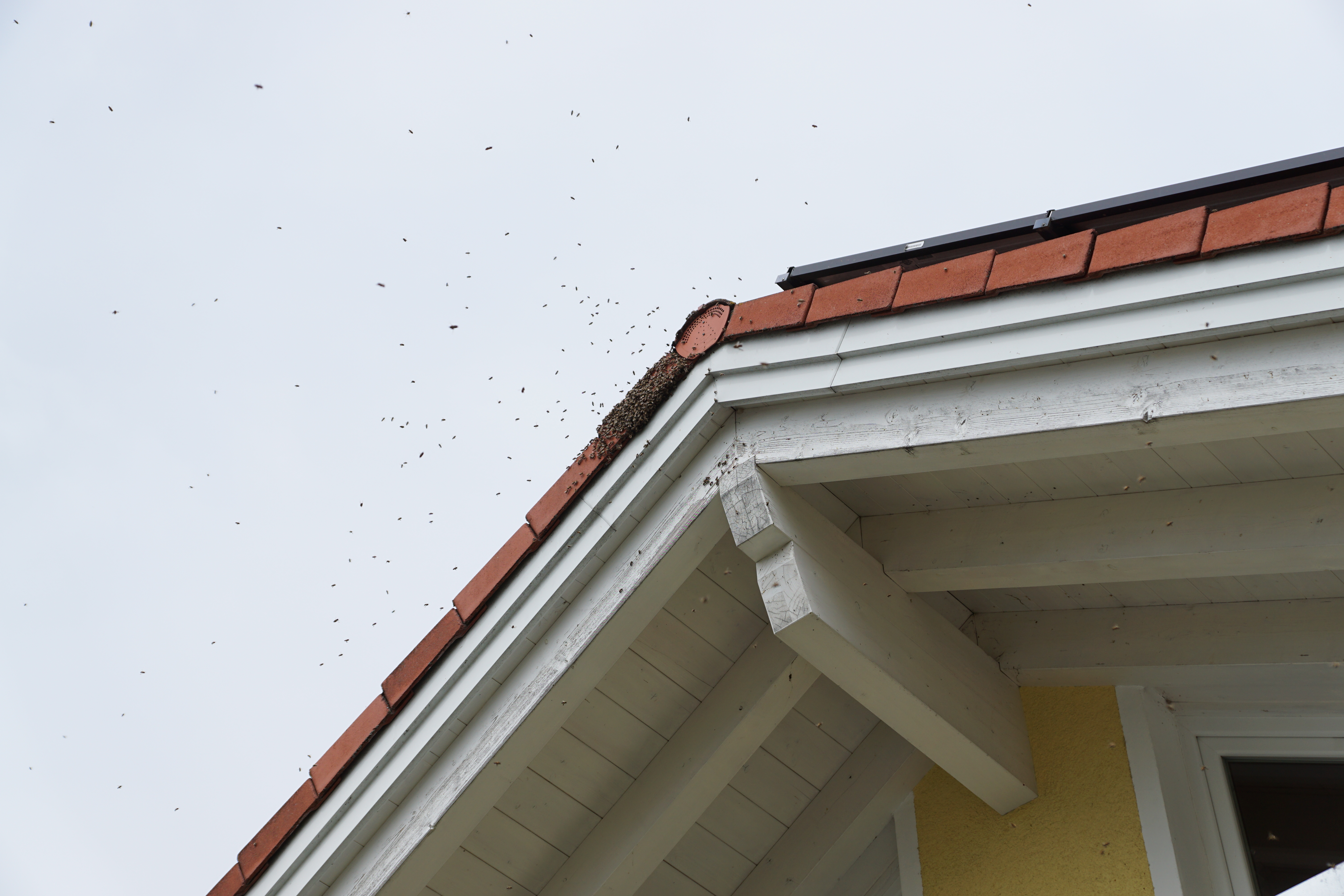 Zuerst einsprühen, damit nicht so viele Bienen auffliegen:
