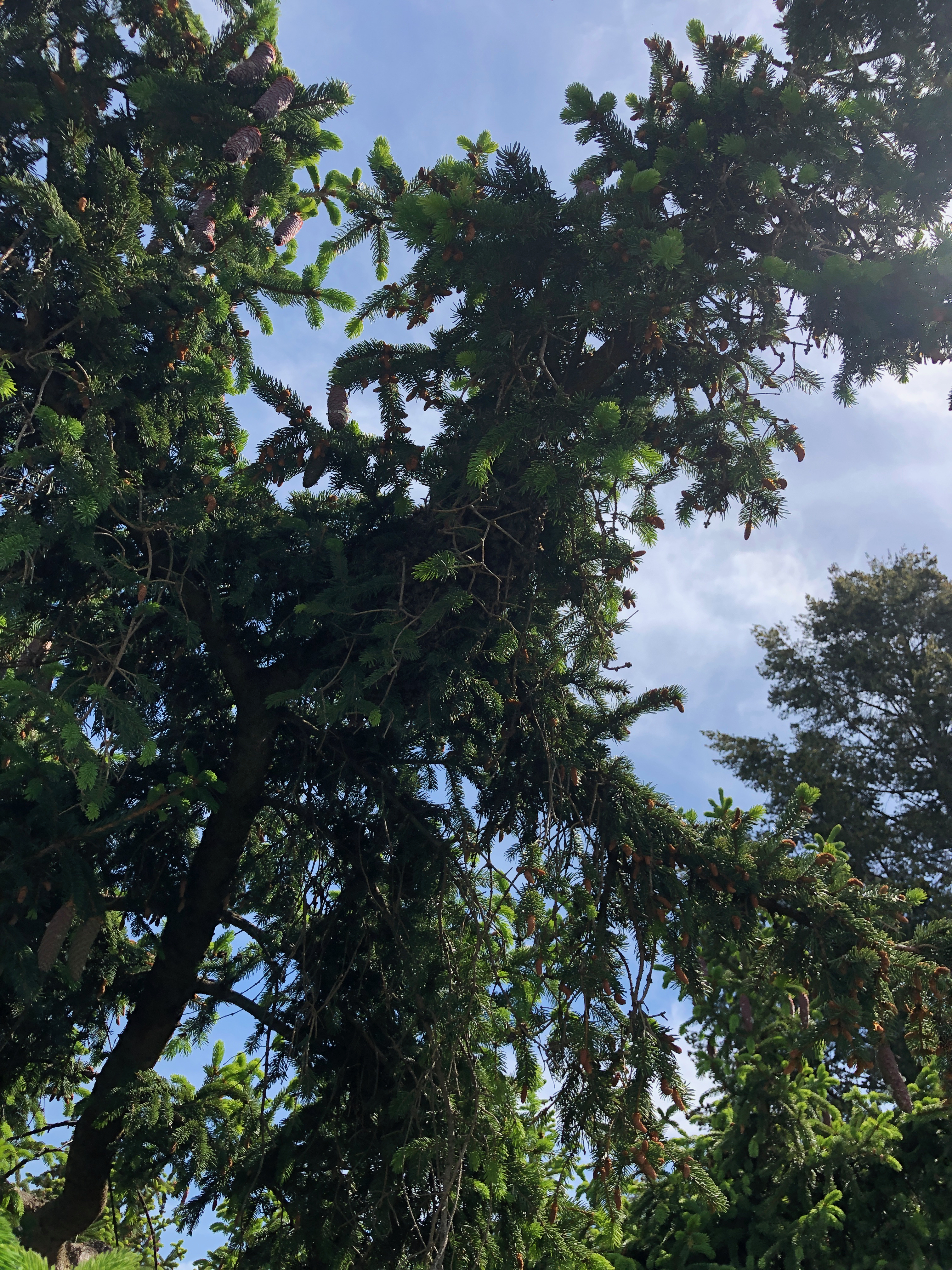 Ab dann heißt es hoffen, dass man in einem der Züge die Königin mit erwischt hat und diese in der Kiste ist. Das war auch hier recht schnell der Fall, wie man am Verhalten der um die Kiste fliegenden Bienen deutlich sehen konnte. Aber scheinbar hatte die Königin einen sehr guten Duft oben im Baum hinterlassen, denn es sammelten sich immer wieder Bienen oben. Vermutlich hat ihnen einfach die tolle Aussicht auf den wunderschönen Garten gut gefallen! 🙂 Ging mir genauso.