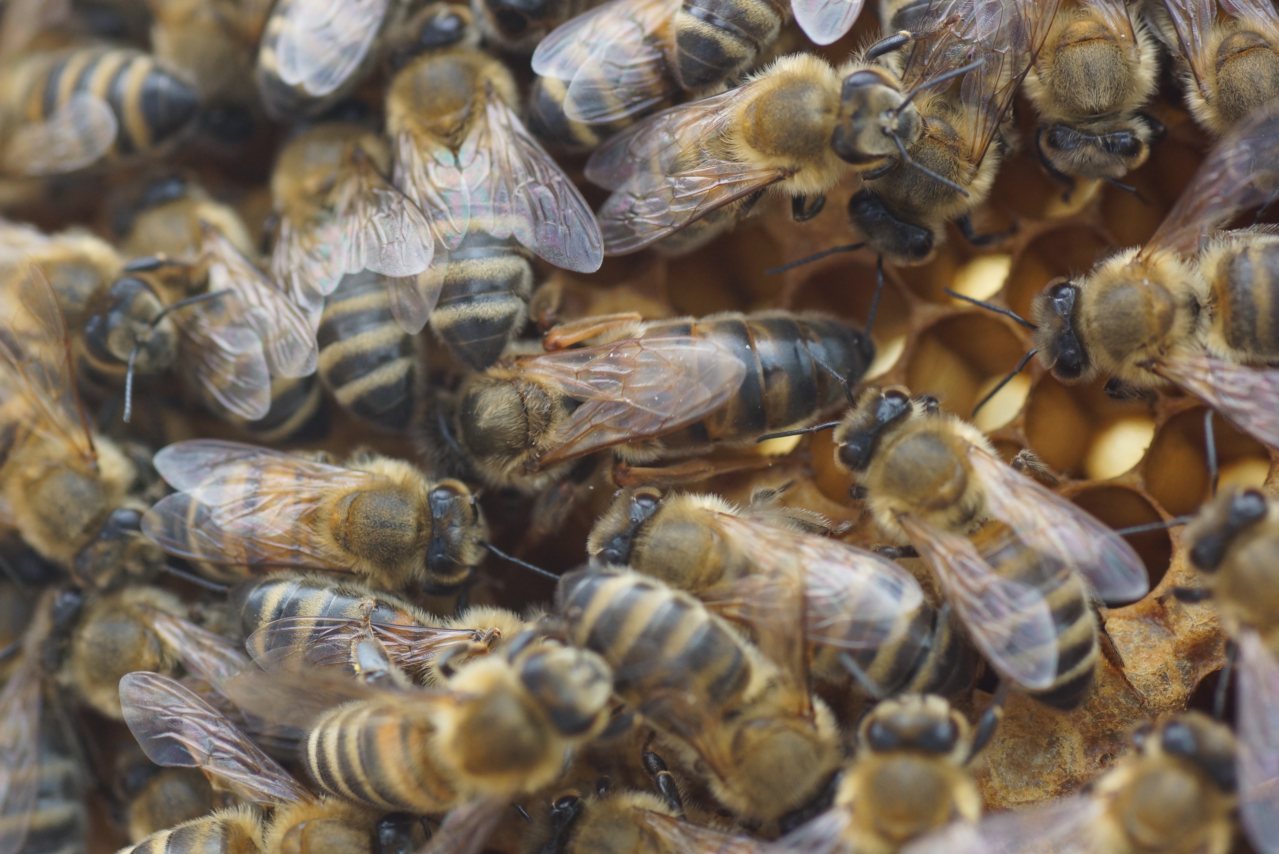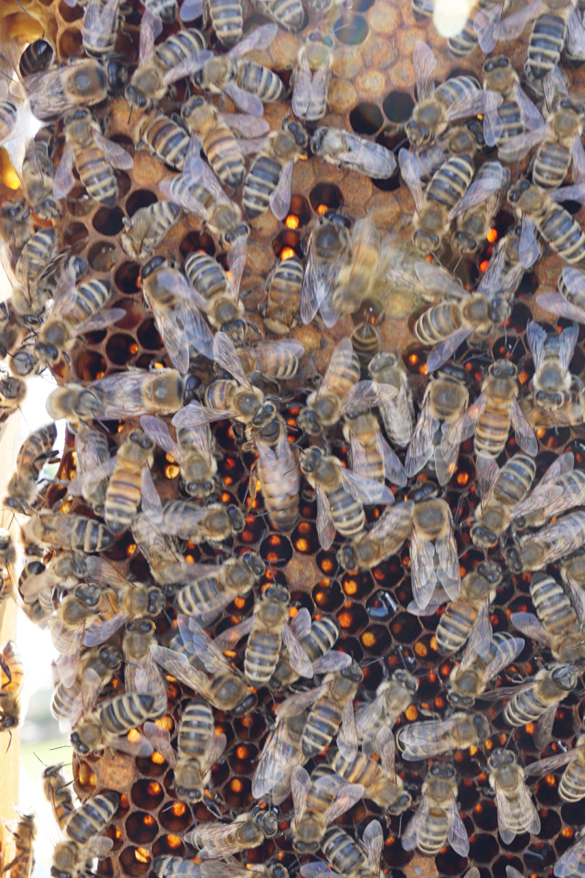 Und dann habe ich es tatsächlich 14 Tage lang geschafft, den Deckel zu zu lassen. Erste Kontrolle am 30. Mai: keine Königin zu finden aber Stifte. Das wäre jetzt soweit ok, wenn da nicht fast alle Stifte in den Drohnenzellen gewesen wären, und davon ganz viele mehrfach bestiftet und nicht sauber in der Mitte platziert.
