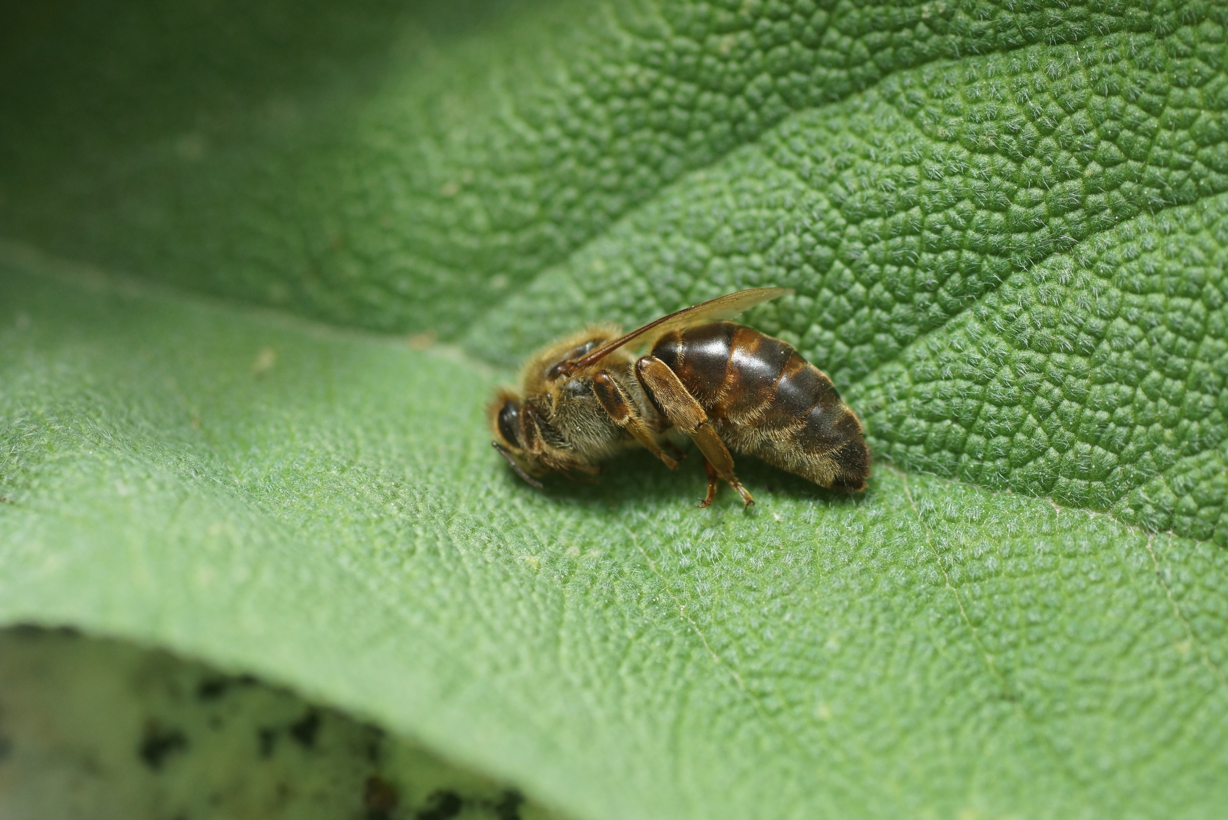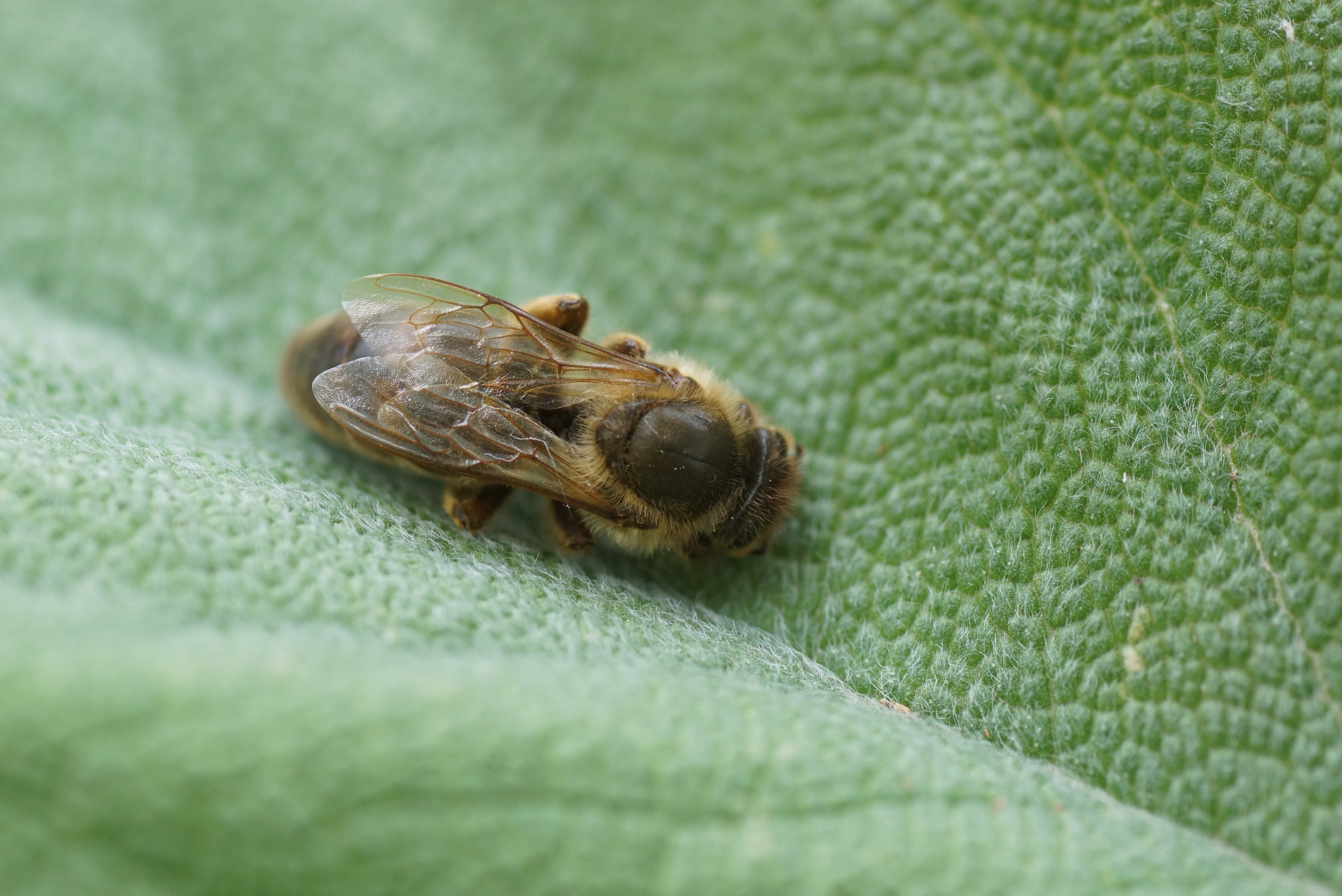 Ich hob sie auf und wir legten sie auf ein Salbeiblatt, um sie zu fotografieren. Ich war mir ziemlich sicher, dass es Walburga war. Auch wenn der Grillabend mit der PEKiP-Truppe wieder richtig toll war und sogar das Wetter mitspielte, ging mir die tote Königin doch irgendwie nicht mehr aus dem Kopf. Ich hatte sie tags zuvor noch im Volk gesehen und auch sehr viele Stifte. Aber würde so spät im Jahr noch ein Nachschaffen funktionieren? Würde eine nachgezogene Königin noch einen erfolgreichen Hochzeitsflug schaffen? Oder müssten wir im Internet nach einer begatteten Königin suchen? Fragen über Fragen… Und ehrlich gesagt war ich schon auch ganz schön traurig. Sie war ja unsere allererste Königin, und wir hatten sie gerade mal zweieinhalb Monate… 😦