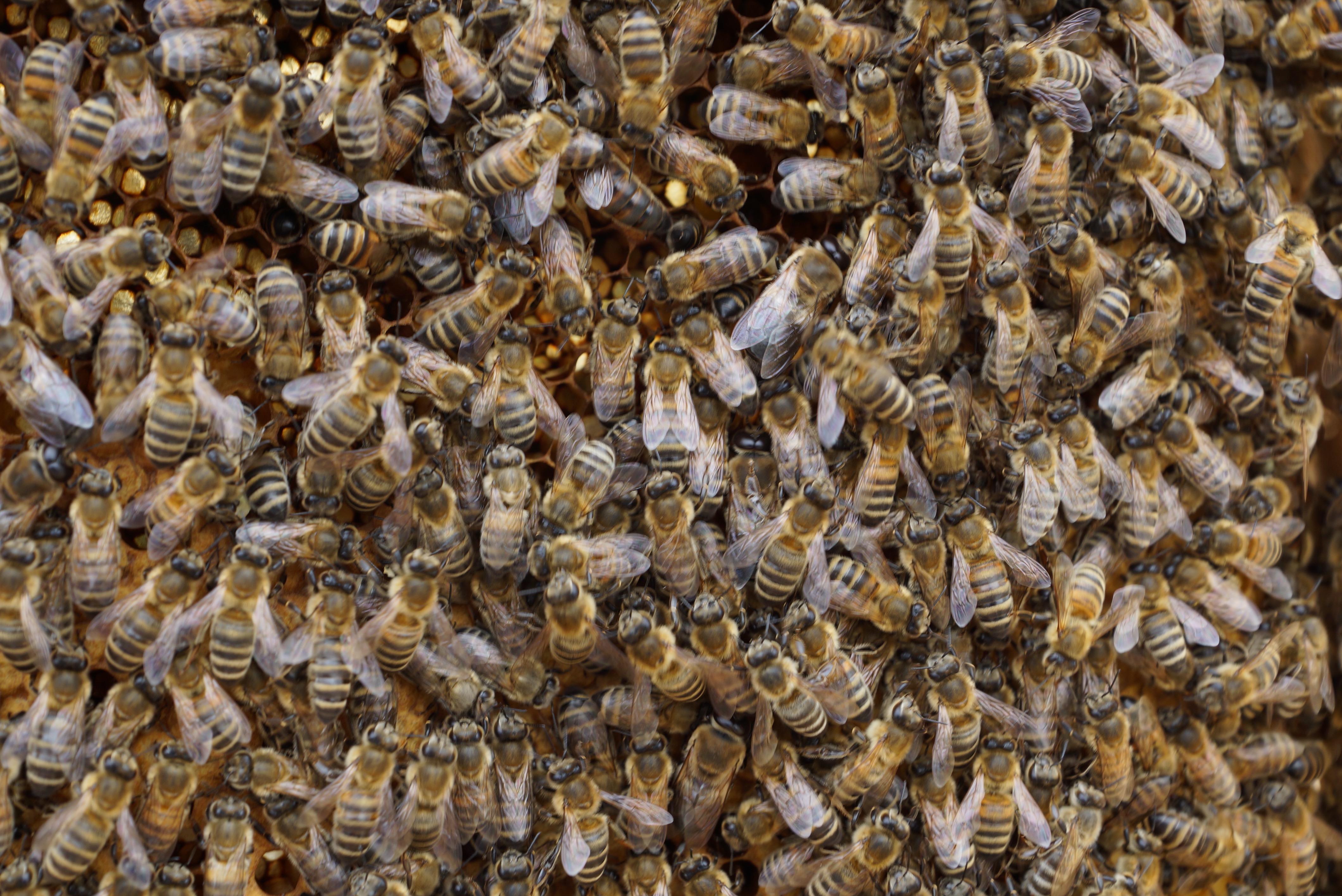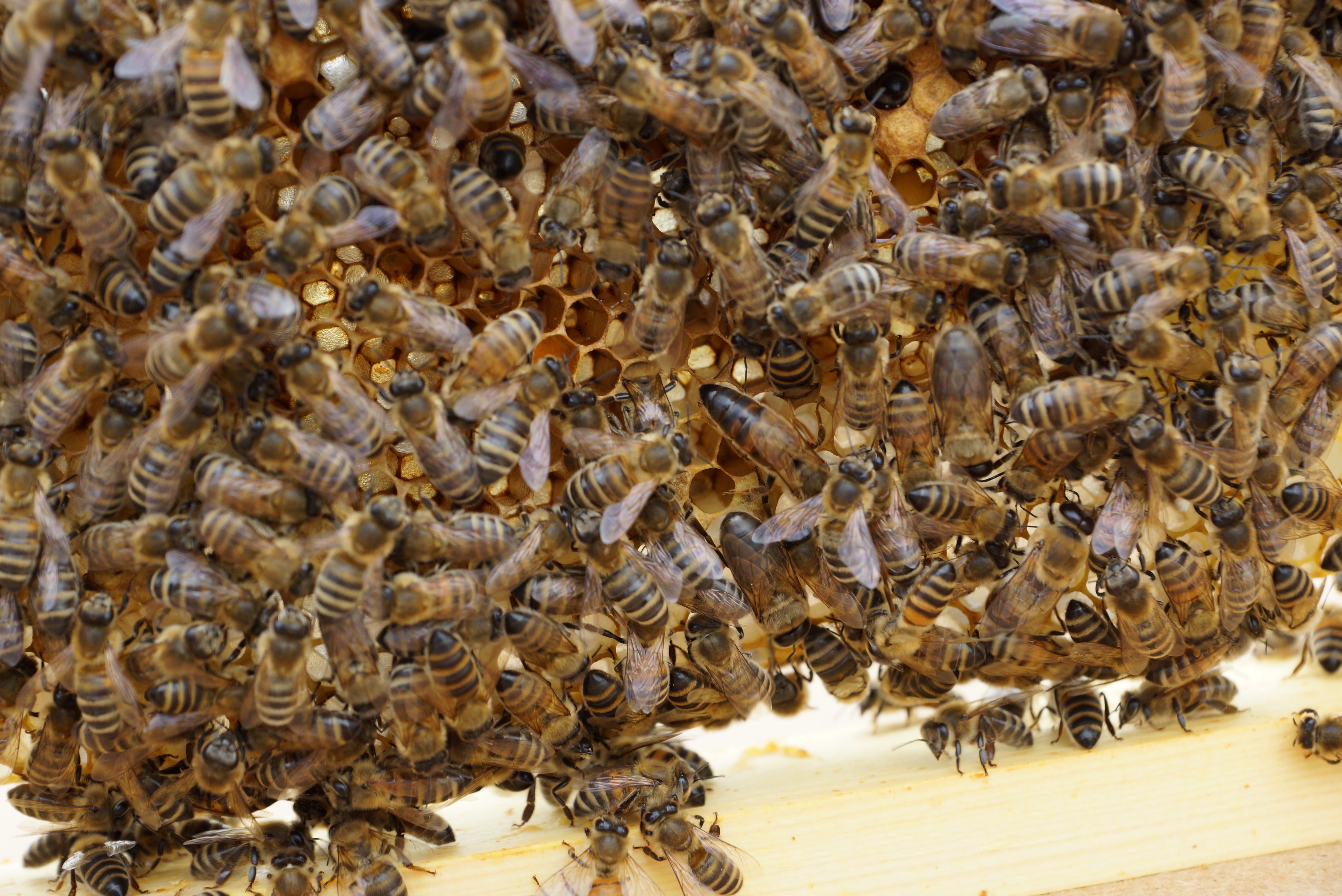 Heute habe ich mal wieder die grüne Einraumbeute nach Königin und Nachwuchs durchgeschaut. Zu Punkt 1: Die immer noch namenlose Königin war trotz des immensen Gewusels zu sehen. Hier mal ein Wimmelbild für Fortgeschrittene: