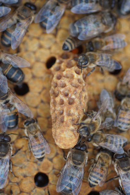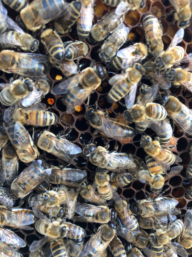 Apropos Nachbarn: Die Königin in der Mini-Plus ist in Eiablage! Es mangelt noch ein wenig an Waben, aber das wird hoffentlich bald besser werden, denn die nächste Generation Arbeiterinnen ist unterwegs: