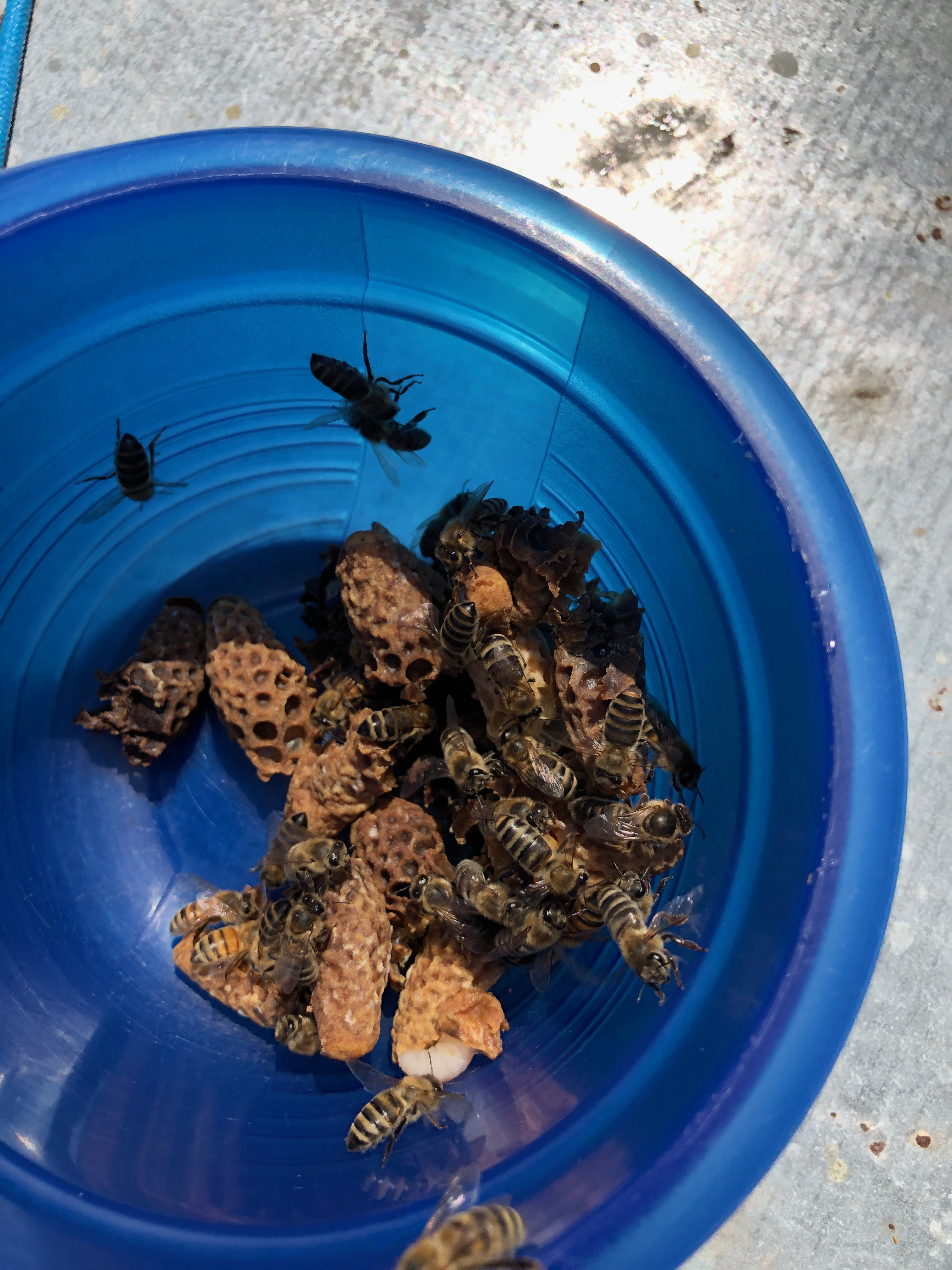 Dieses Mal schlüpfte die Königin inmitten lauter abgetrennter Weiselzellen in einem Tupperschälchen, wo ich es erst bemerkte, als es auf einmal nicht nur in der Beute sondern auch noch neben mir tutete…