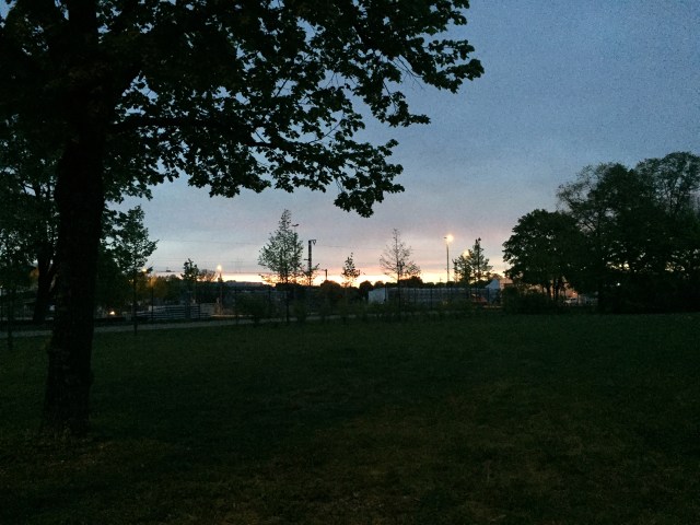Nach Einbruch der Dunkelheit saßen dann nur noch wenige vor dem Flugloch und an den Gittern. Da es nachts noch mal kalt werden sollte, wollten wir die Bienen im Keller übernachten, weshalb der Rest dann mit Hilfe von Tobi um 10 Uhr nachts noch in die zweite Schwarmkiste abgefegt und mit dem Trichter zum restlichen Schwarm hinein befördert wurden. Notiz an mich selbst: in Zukunft auch beim nächtlichen Schwarmfang Hose in die Socken! Aber es war zum Glück nur eine und der Stich oben in die Wade war auch eher nicht so wild.