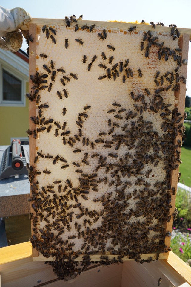 Irgendwann waren dann endlich fast alle drin, und ich fuhr mit einer richtig schweren Schwarmkiste nach Hause: