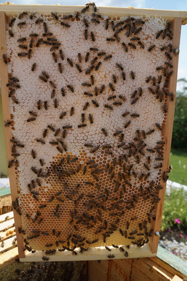 Zuerst einsprühen, damit nicht so viele Bienen auffliegen: