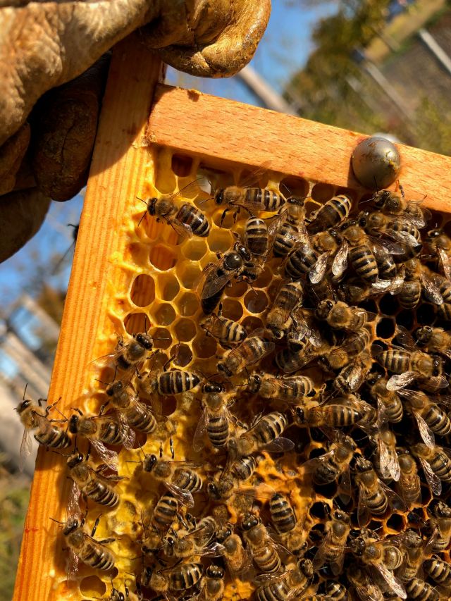 Das Volk hatte Mitte Mai einen schönen Schwarm gehabt, es ist alles wunderbar verlaufen und die neue Königin Maria I. (nach Frau Montessori benannt) ist Mitte Juni ganz brav am Eierlegen gewesen. Das Volk hat sich sehr gut entwickelt, ich konnte sogar etwas Honig ernten. Soweit so gut. Über den Sommer konnte ich dann bereits beobachten, dass einfach immer Unmengen an Wespen an der Beute waren. Das Arbeiten war trotz Imkerjacke und Handschuhen schon beinahe unangenehm, weil es so viele waren. Auch in der Beute! Die Bienen waren häufig unruhig – kein Wunder.