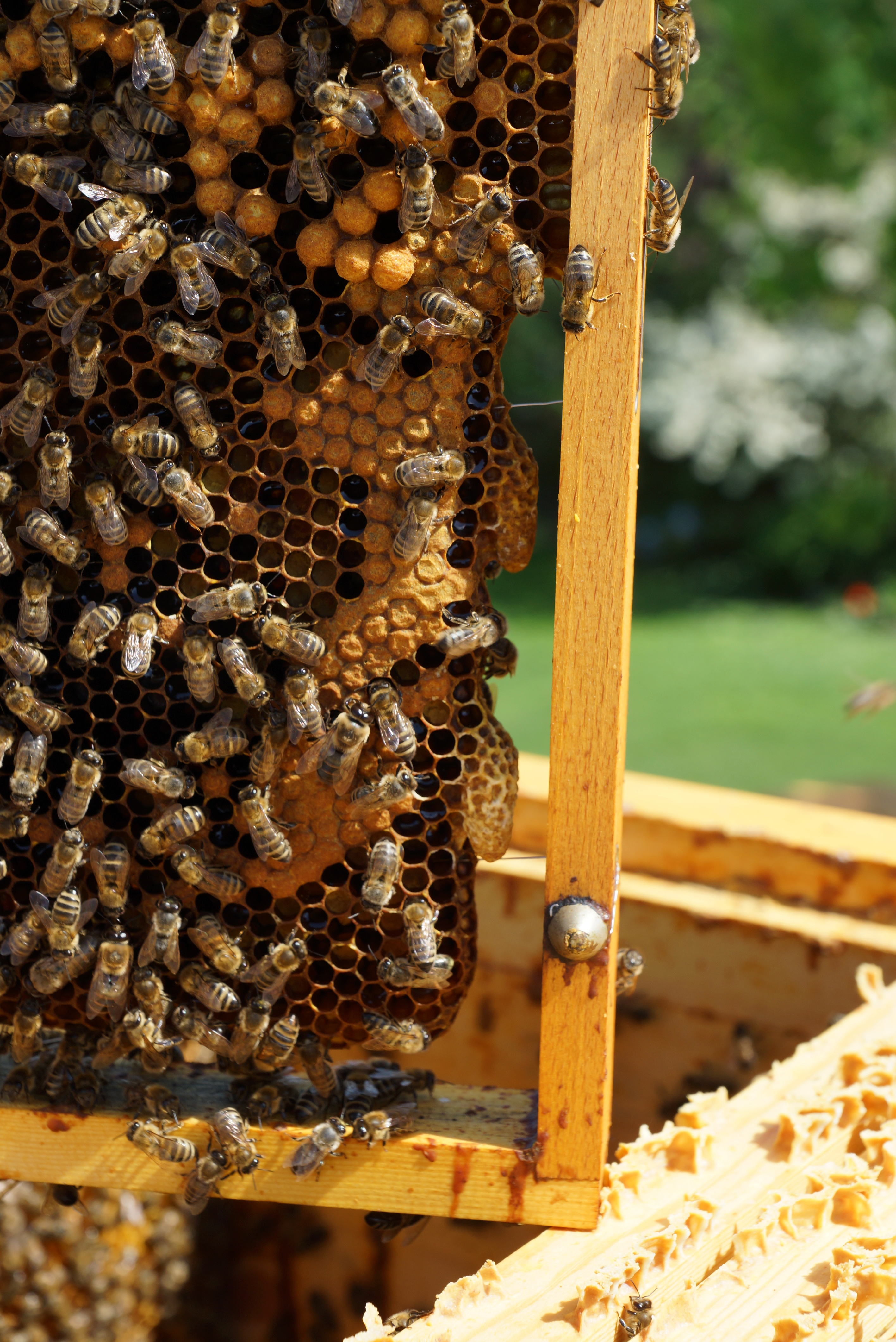 Bei der Kontrolle des Brutraums auf Schwarmzellen (ja, ich kann es immer noch nicht glauben, dass dieses Riesenvolk nicht schwärmen will!) habe ich auch noch einen interessanten Fund gemacht:
