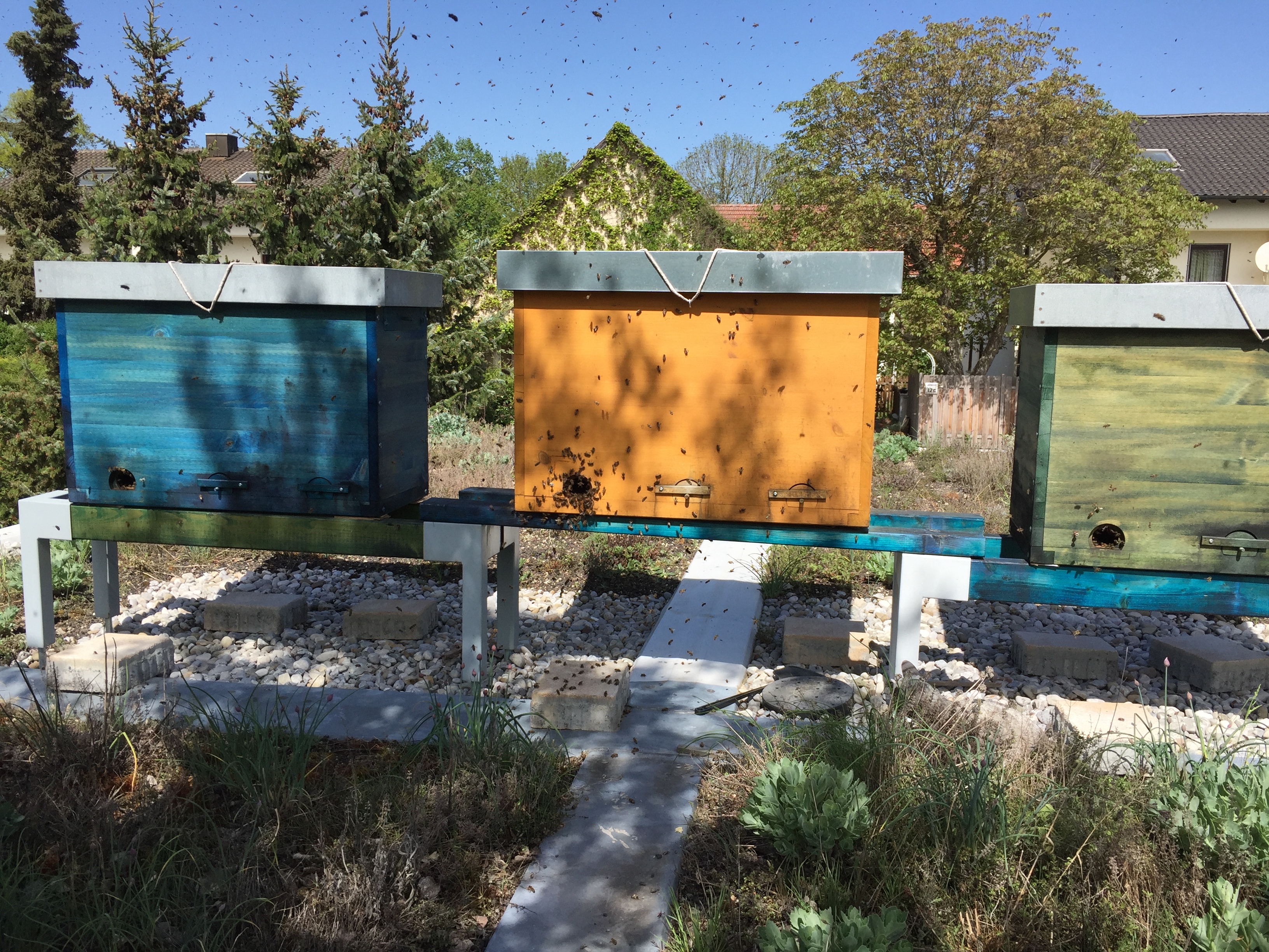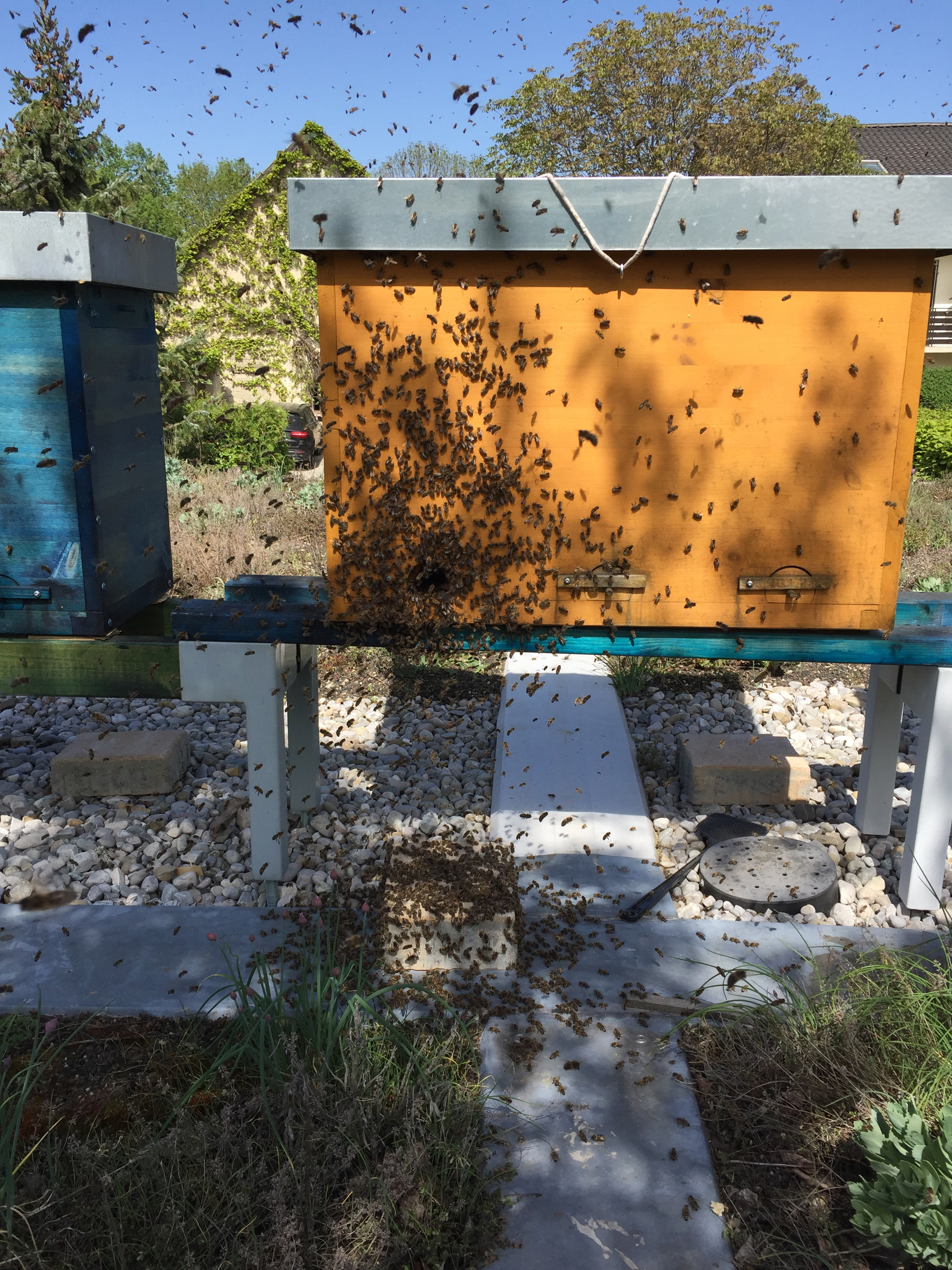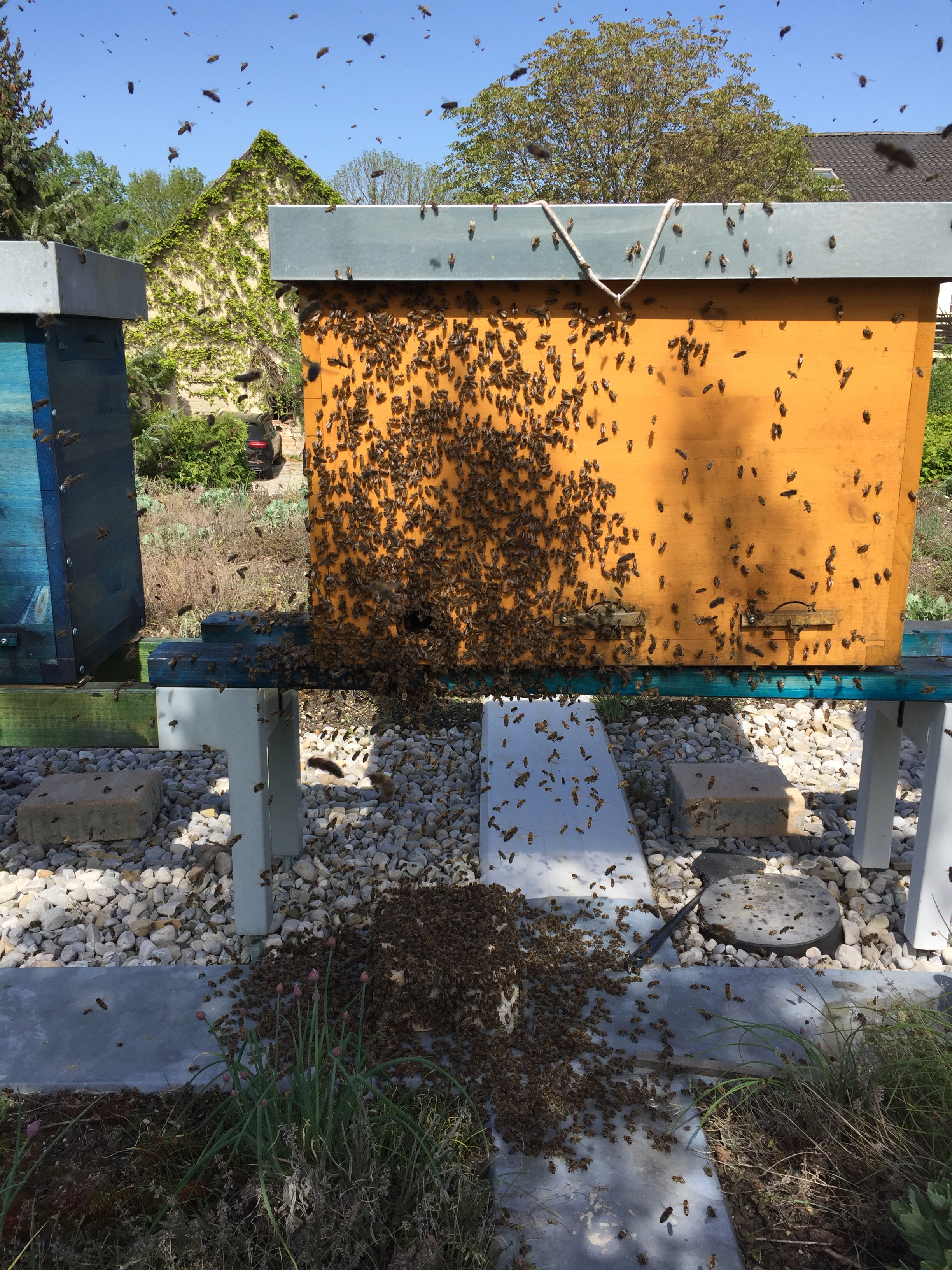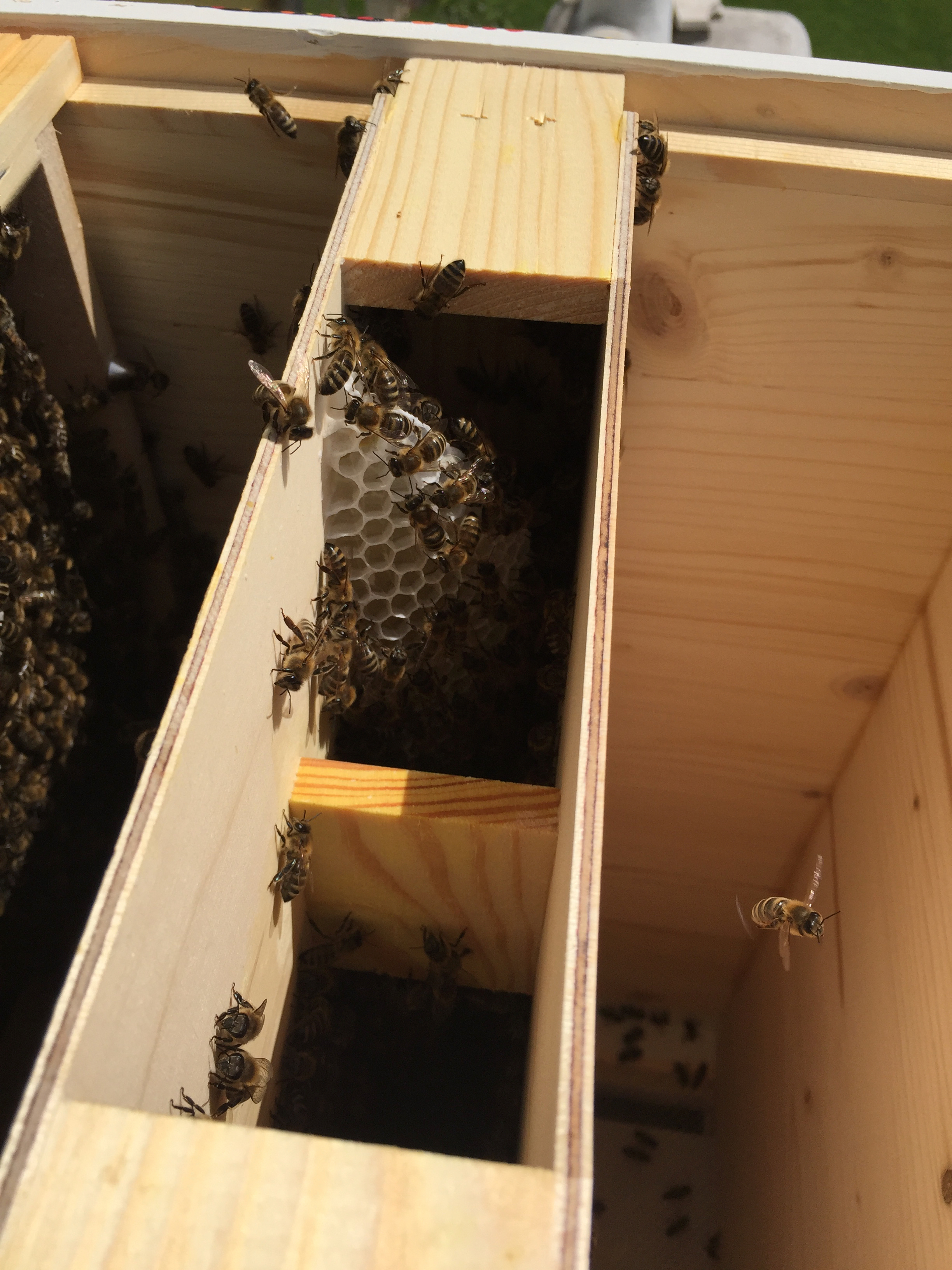 Mein Plan war, ihnen mit dem Honigraum Platz zum bauen zu geben (und der Hintergedanke war, nächstes Jahr für die Balkonbeute schon ein paar ausgebaute Honigraumrähmchen zu haben)…